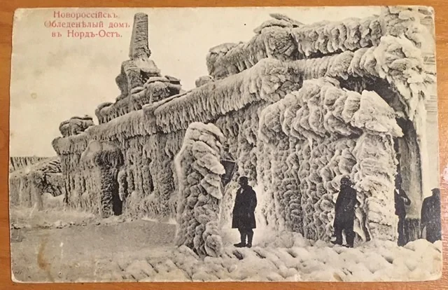 Антикварная открытка: Обледенелый дом в Новороссийске