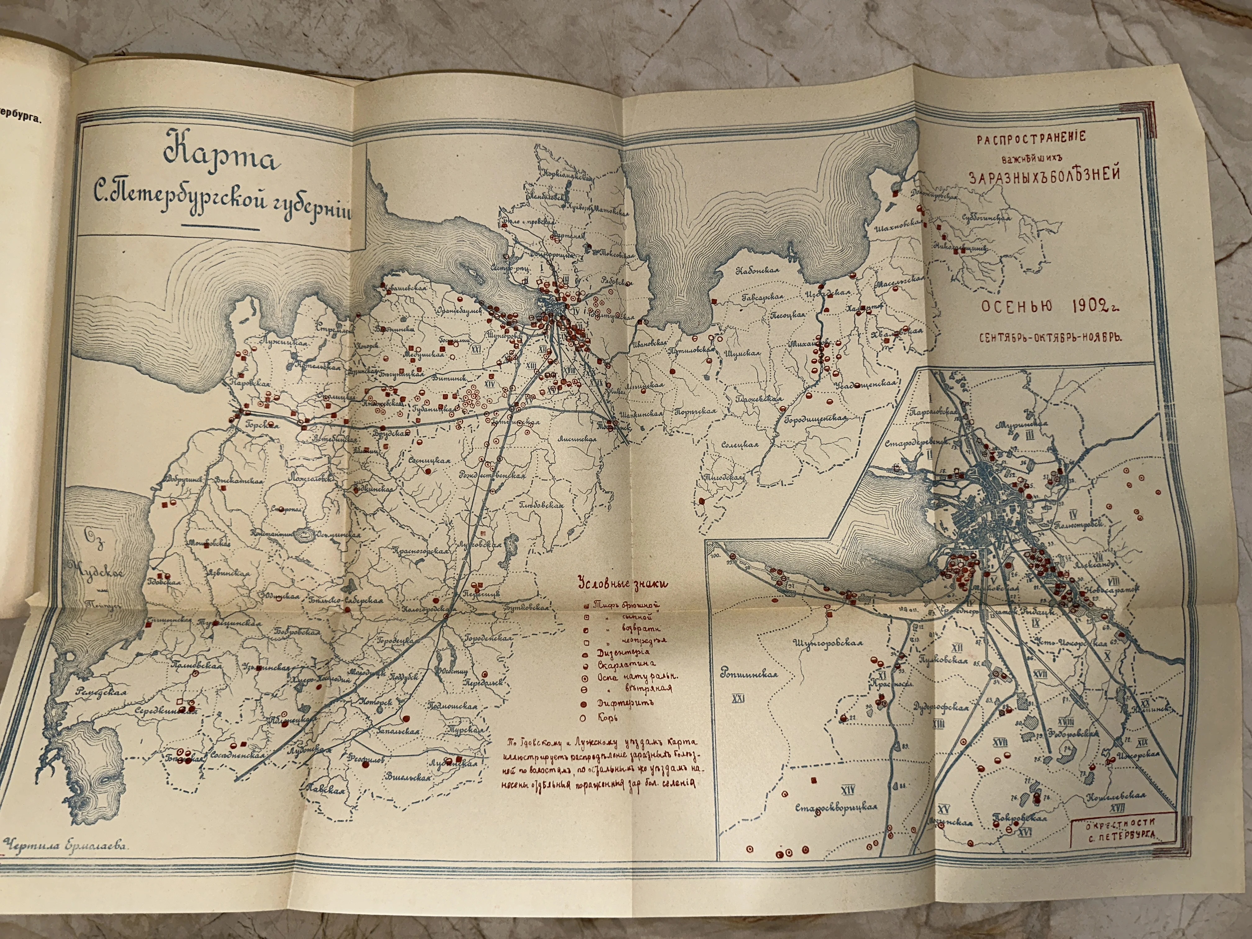 Карта распространения заразных болезней С.-Петербургской губернии, 1902 год