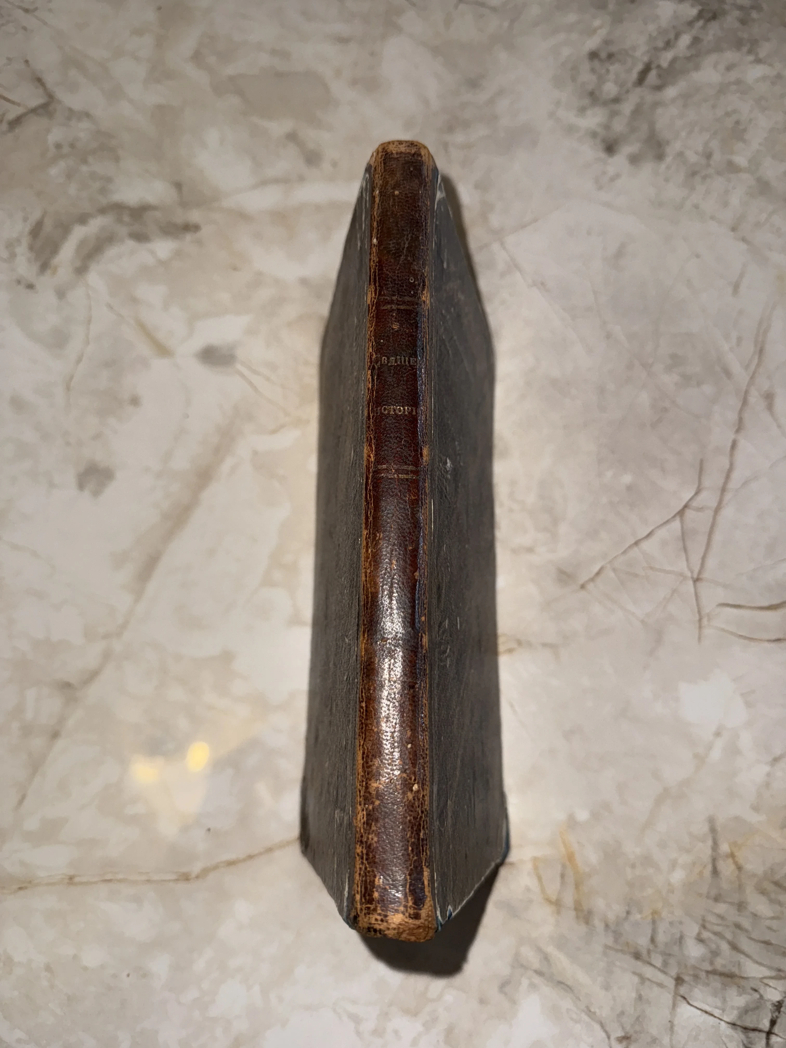 Благородная патина на кожаном корешке и следы времени подчеркивают подлинность этого старинного тома. Золотое тиснение с заглавием «Священная история» сохранило свой блеск, создавая атмосферу преемственности поколений. Это издание станет достойным украшением частной библиотеки или изысканным подарком для коллекционера.