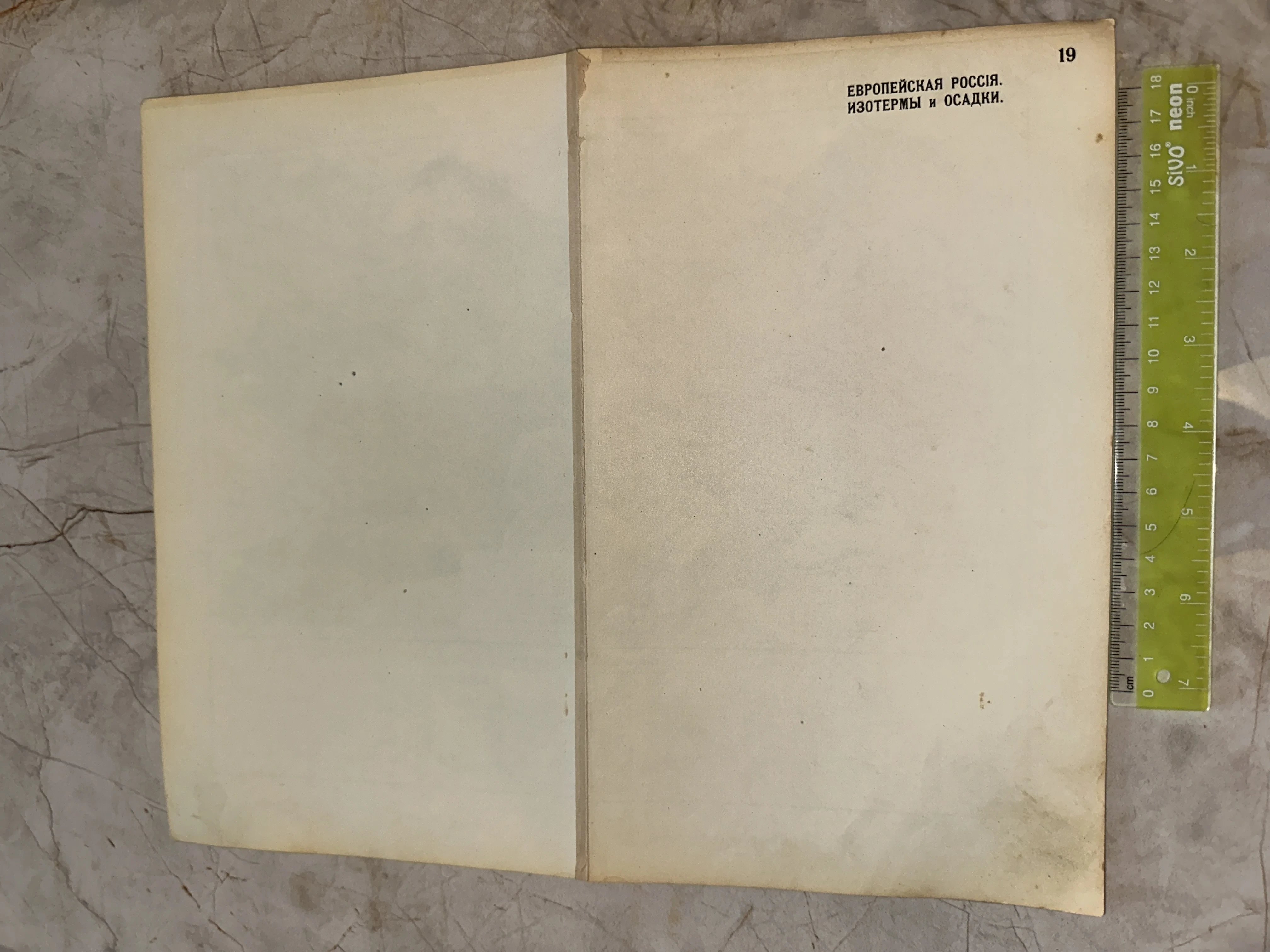Перед вами подлинный оборот антикварного атласа, сохранивший благородную патину времени и уникальную текстуру бумаги конца XIX — начала XX века. Лаконичный заголовок, выполненный в дореволюционной орфографии, подчёркивает историческую ценность предмета. Лист находится в хорошем состоянии, демонстрируя естественное пожелтение, которое так ценится коллекционерами старинной графики.