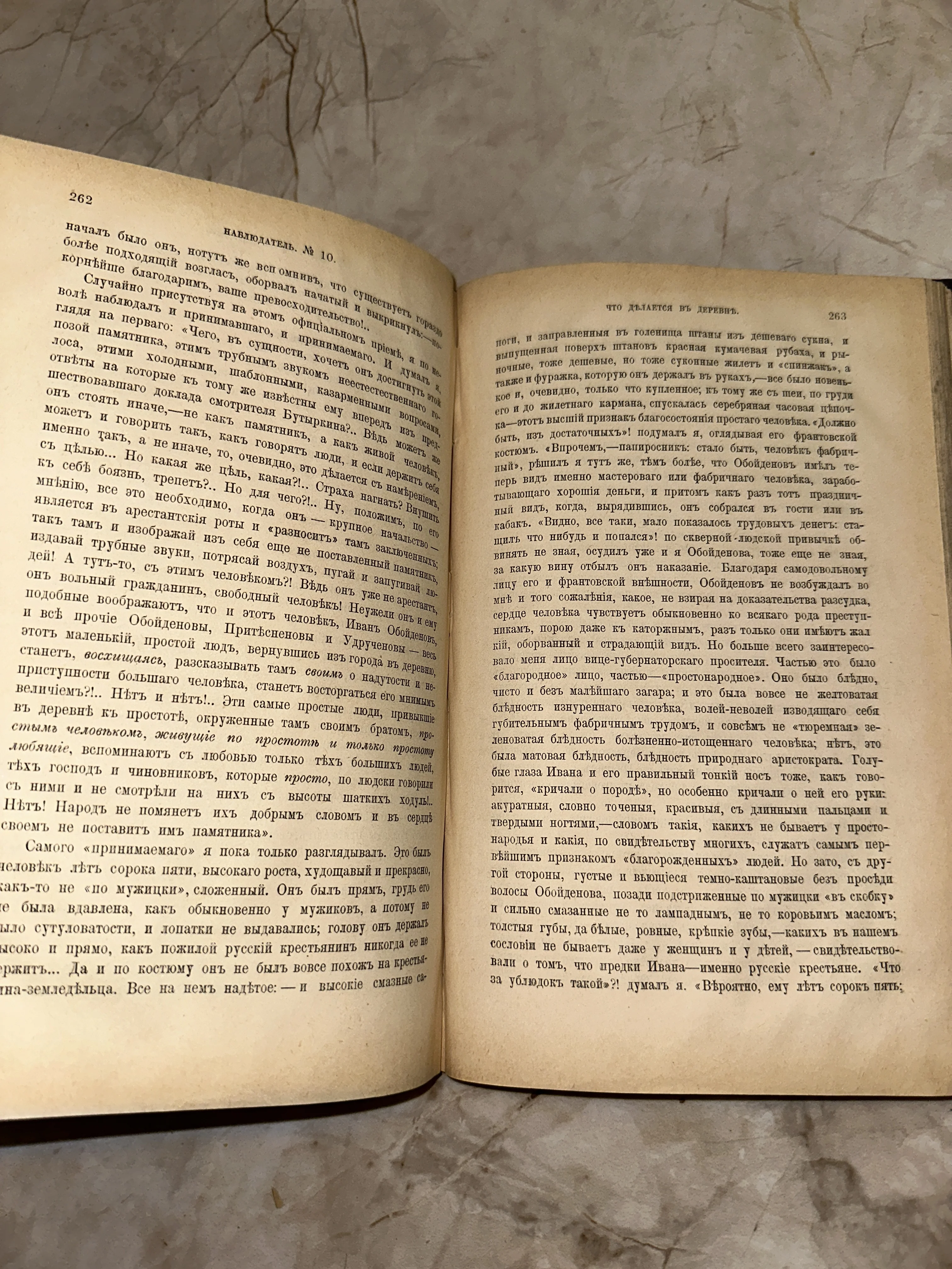 Разворот антикварного журнала Наблюдатель с текстом на старорусском языке, страницы 262-263.