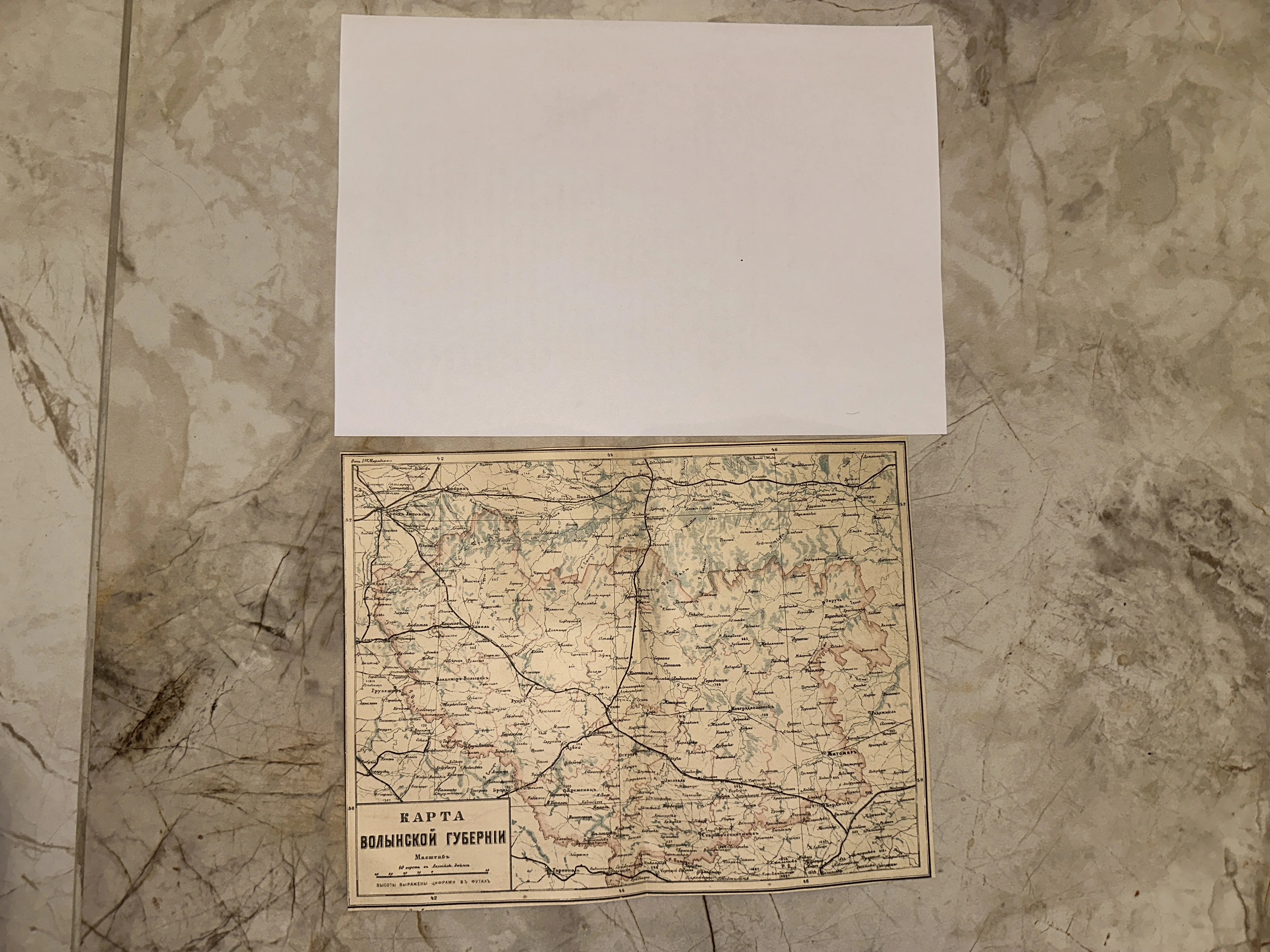 Изысканный образец картографического искусства, детально фиксирующий границы и ландшафт исторической Волынской губернии. Карта выполнена с высокой точностью, сохранила четкость линий и благородный оттенок состаренной бумаги, что делает её ценным экспонатом для коллекционеров и любителей истории.