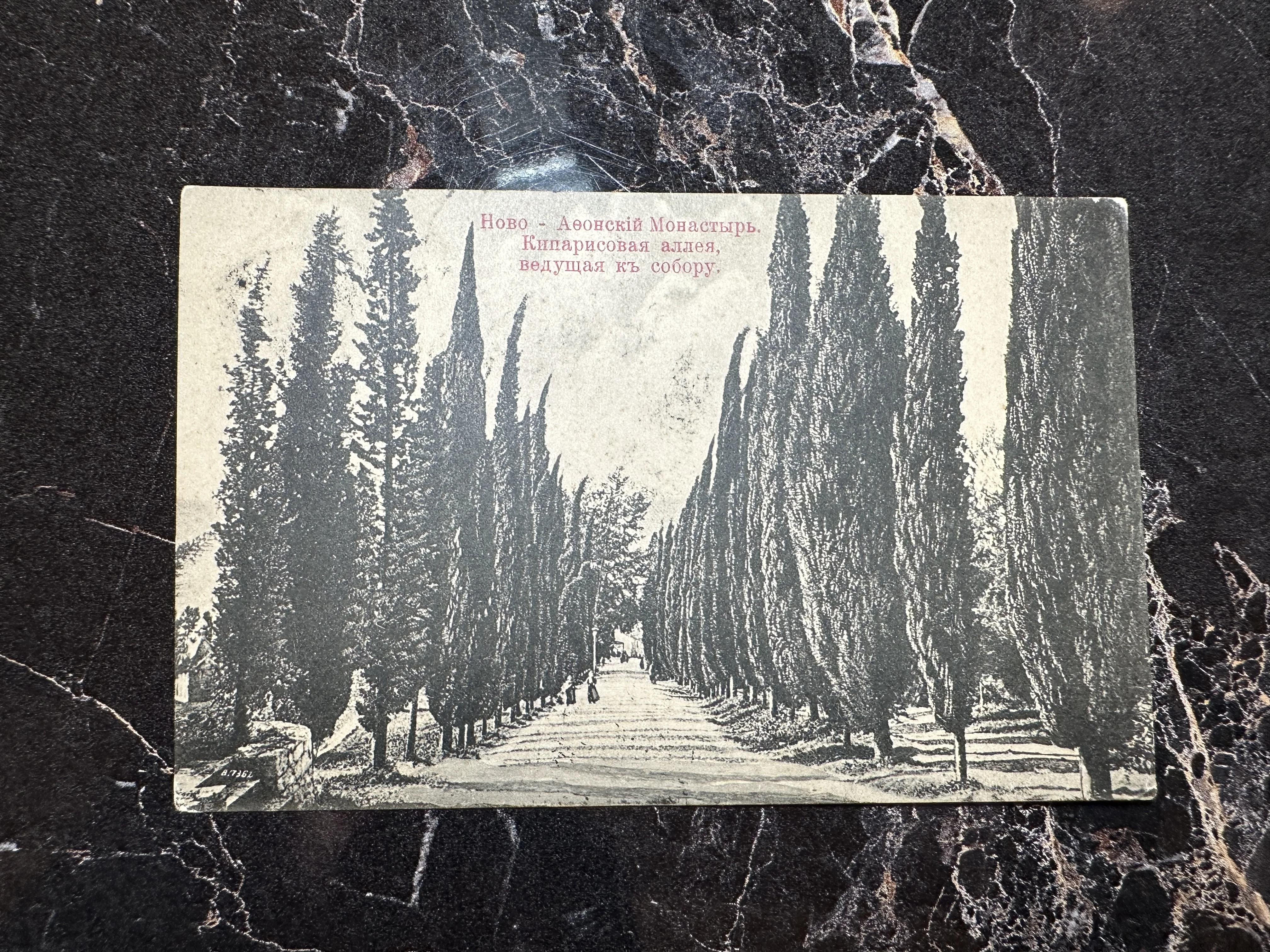 Антикварная открытка: Кипарисовая аллея Ново-Афонского монастыря