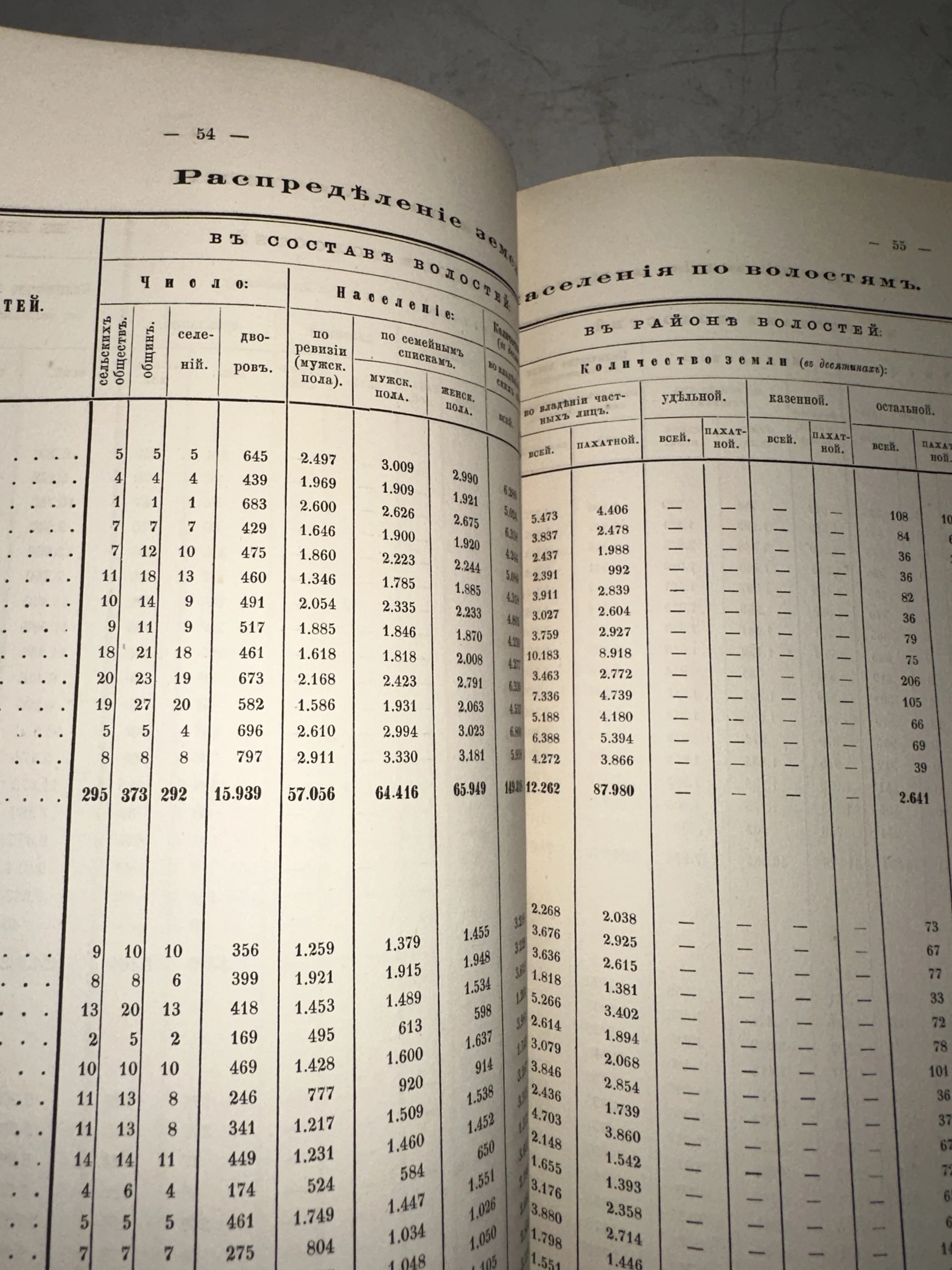 Статистические таблицы распределения земель и населения