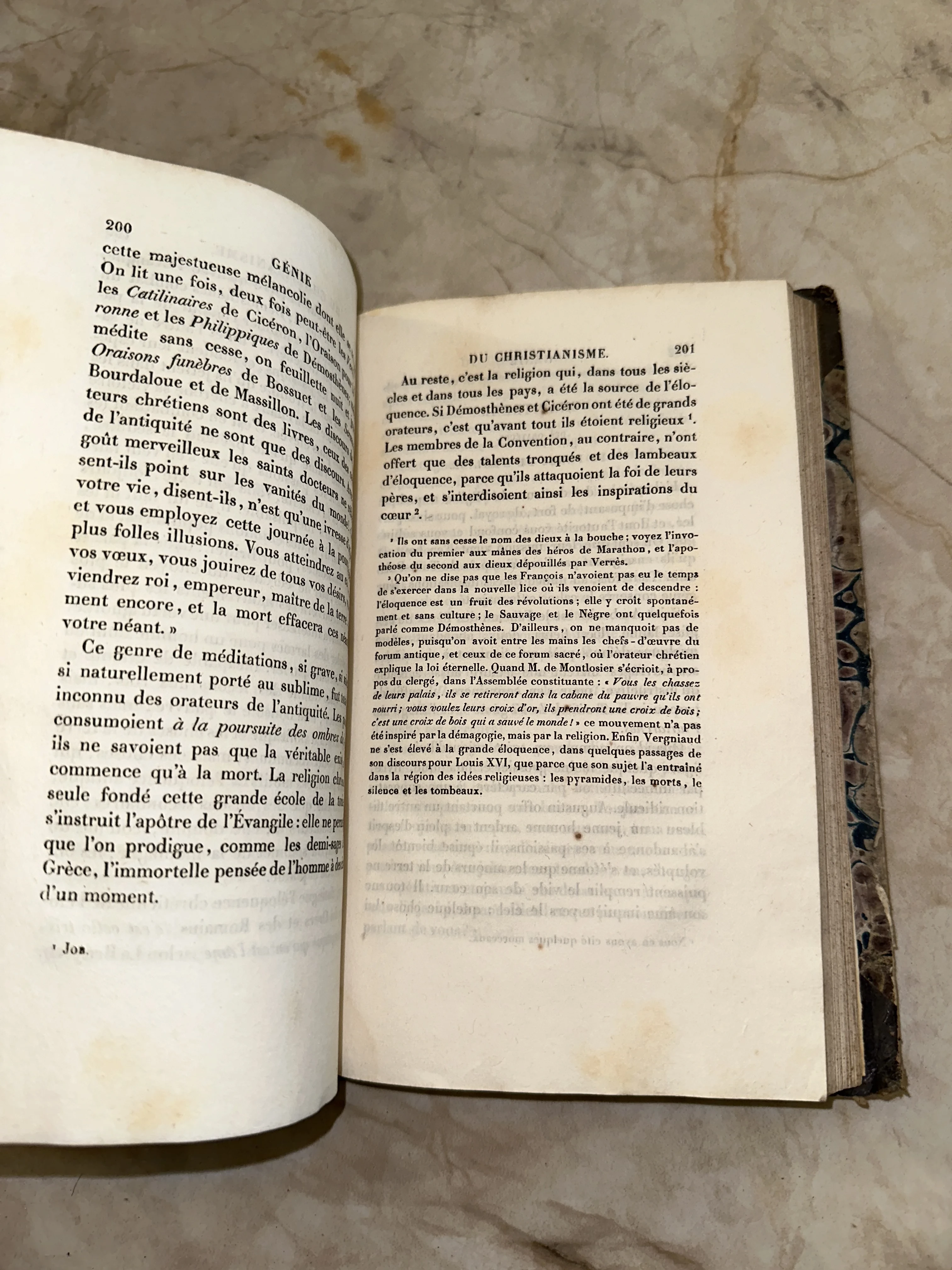 Перед вами редкий экземпляр классического труда Шатобриана, сохранивший очарование ушедшей эпохи. Благородная патина на страницах и четкая типографская печать XIX века подчеркивают аутентичность этого коллекционного предмета. Книга станет достойным украшением интеллектуального интерьера или ценным пополнением частного собрания европейской литературы.