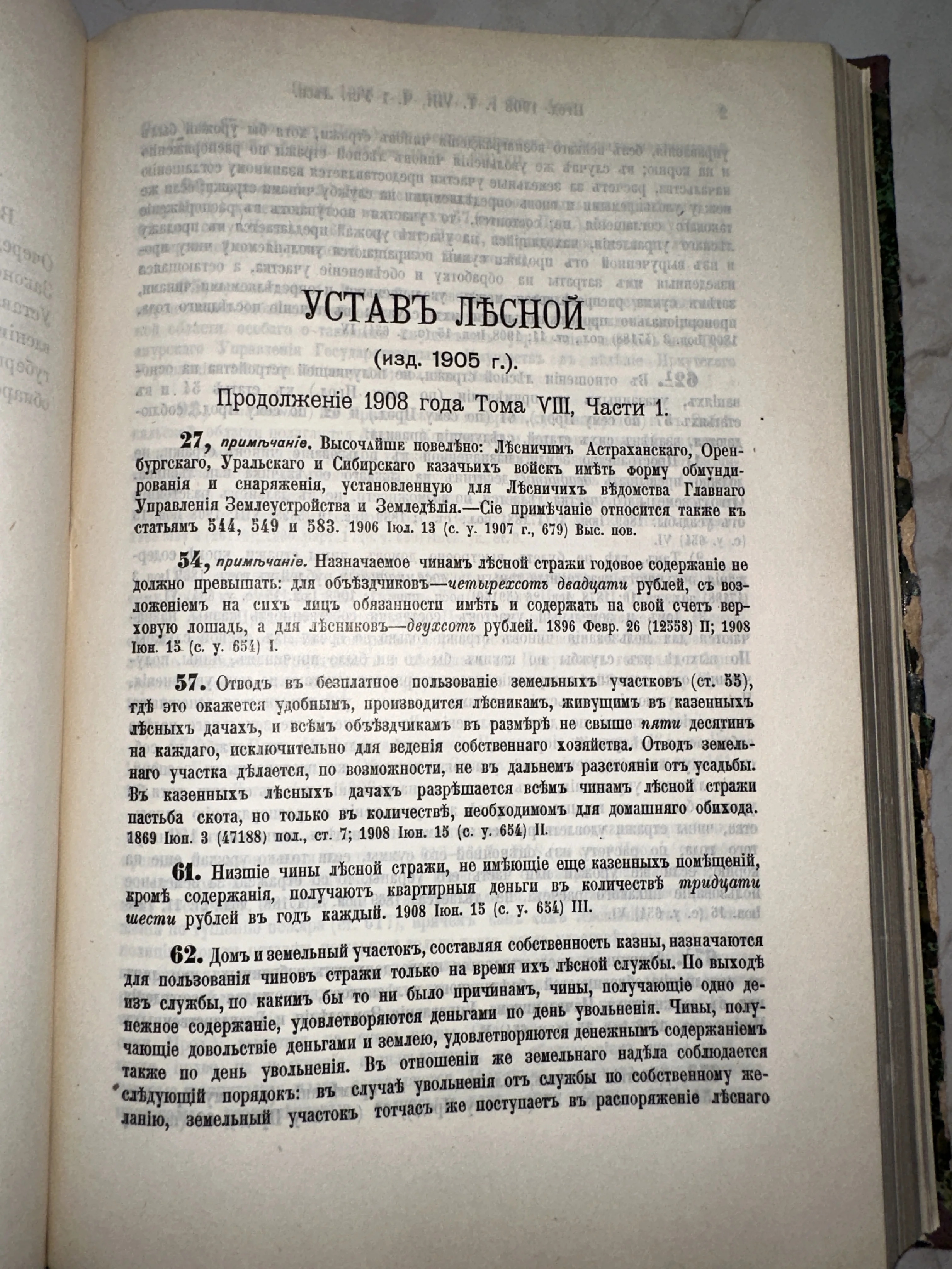 Устав Лесной Российской империи, издание 1908 года