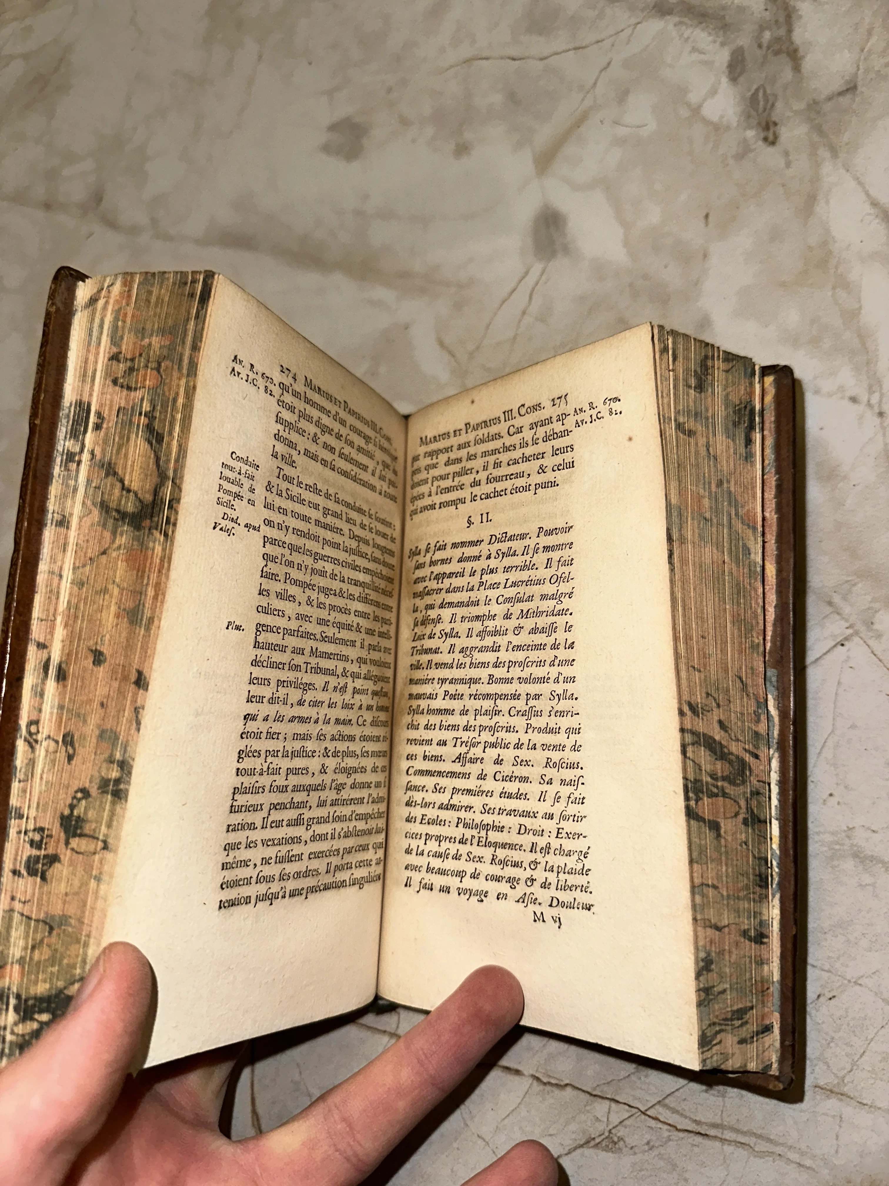 Это редкое издание XVIII века, посвященное истории Древнего Рима, поражает сохранностью типографского искусства. Особую ценность представляет декоративный мраморный обрез страниц и плотная бумага верже с благородной патиной времени. Книга станет изысканным дополнением коллекции классической европейской литературы.