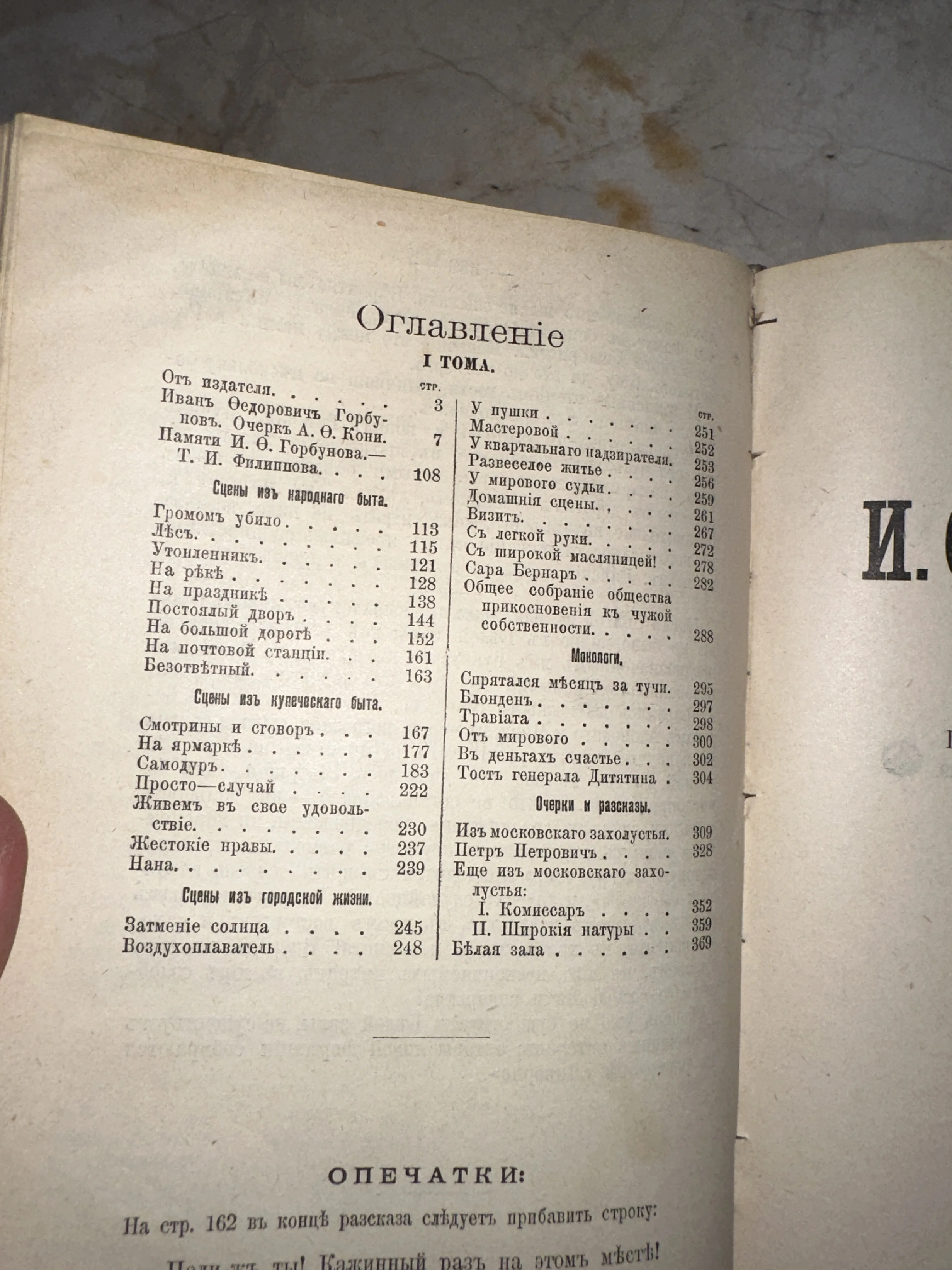Оглавление первого тома сочинений И. Ф. Горбунова