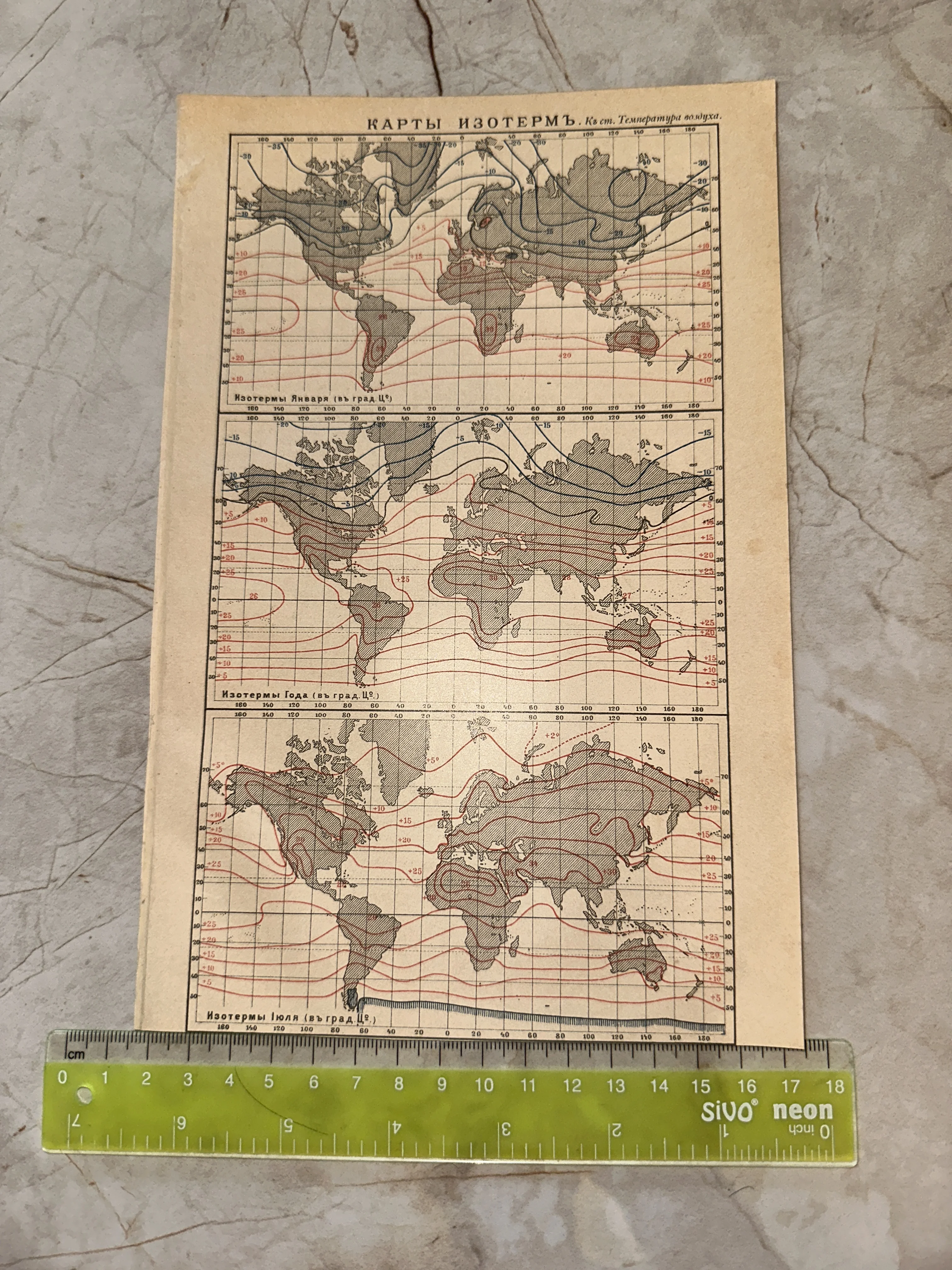 Антикварная карта изотерм земного шара
