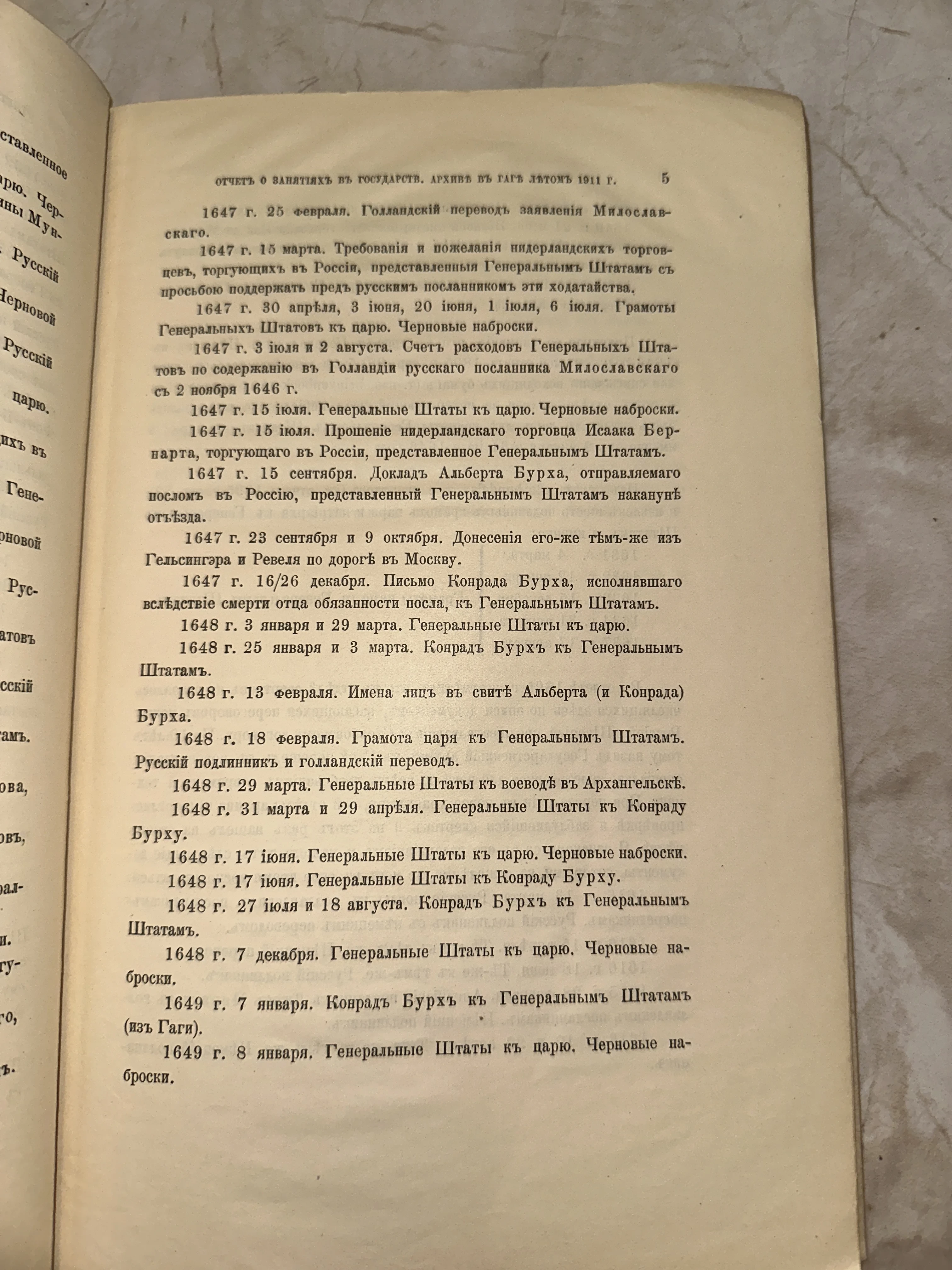 Отчет о занятиях в Государственном архиве в Гааге, 1911 год