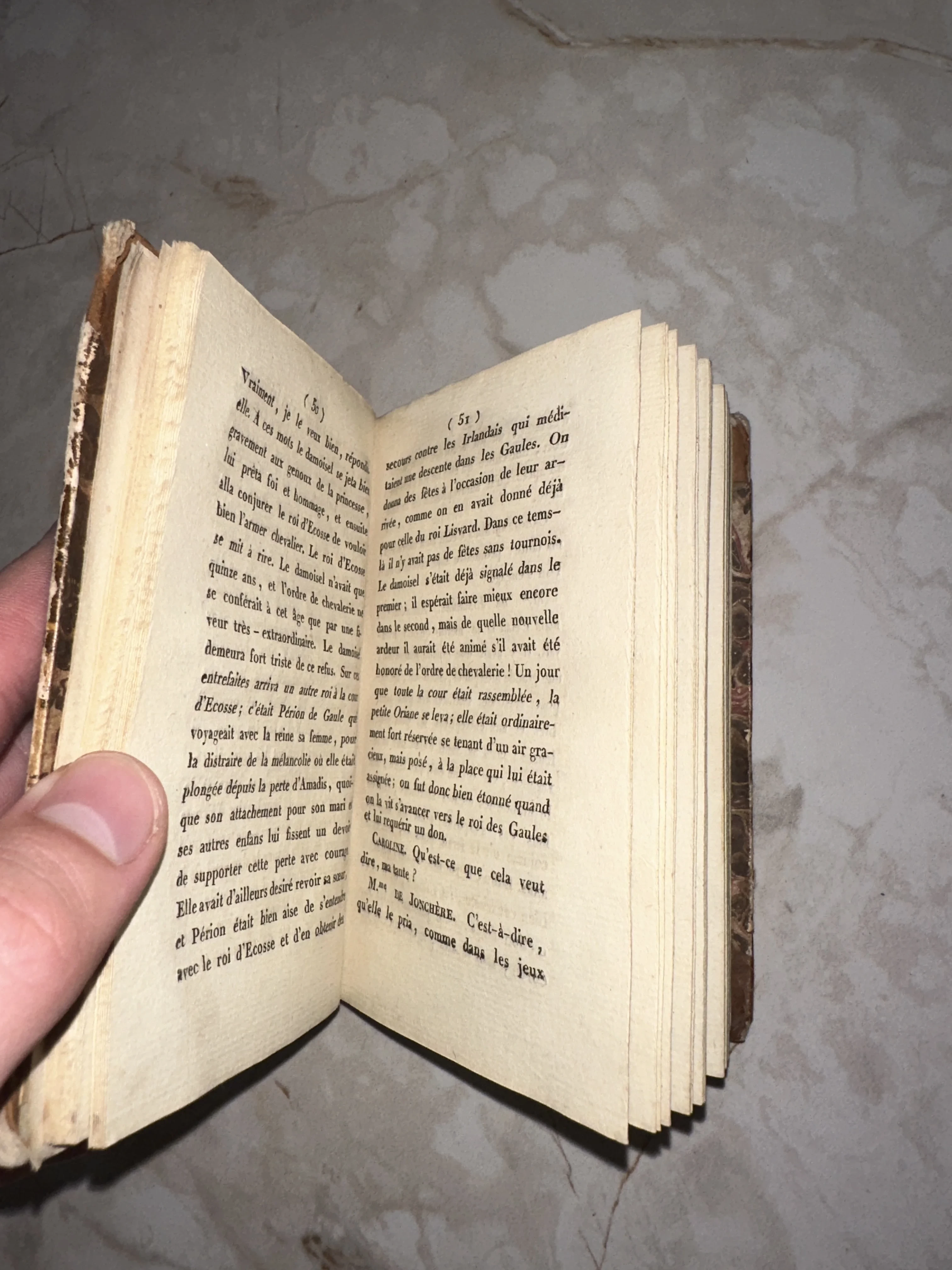 Очаровательный экземпляр карманного формата с сохранившейся патиной времени на страницах. Текст, напечатанный классическим шрифтом, погружает в атмосферу старой Европы, а благородная изношенность переплета подчеркивает аутентичность и историю этого предмета.
