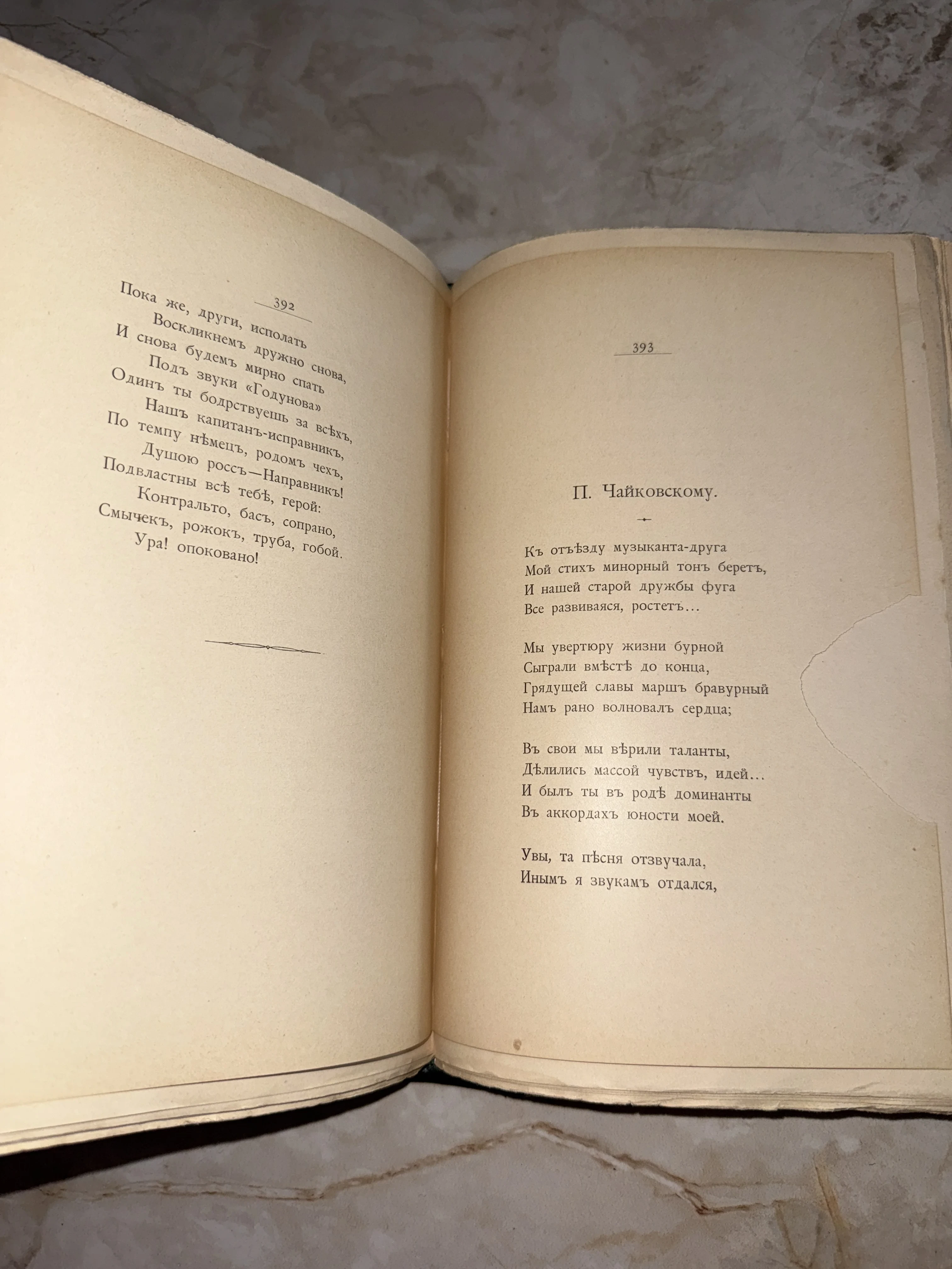 Страницы антикварного издания со стихотворением, посвященным П.И. Чайковскому