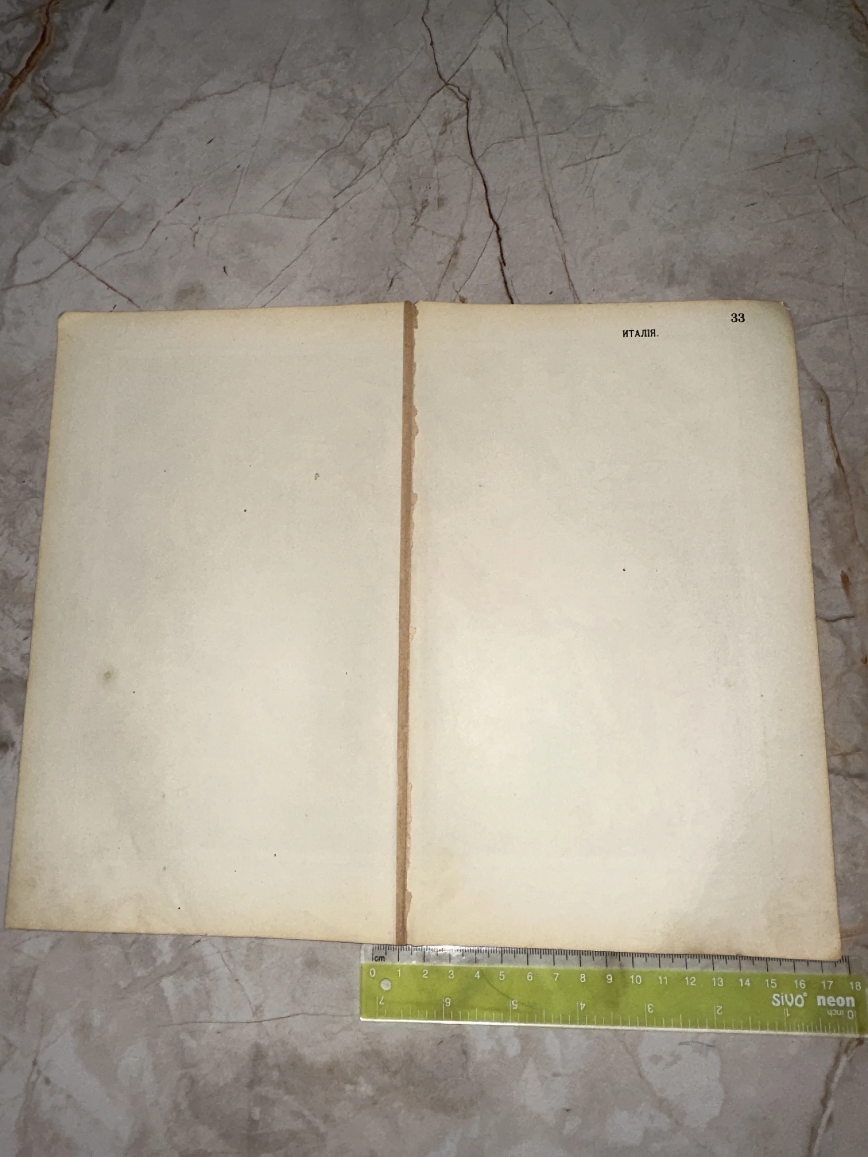 Разворот старинной пожелтевшей книги с заголовком «ИТАЛІЯ» в дореволюционной орфографии и номером страницы 33.