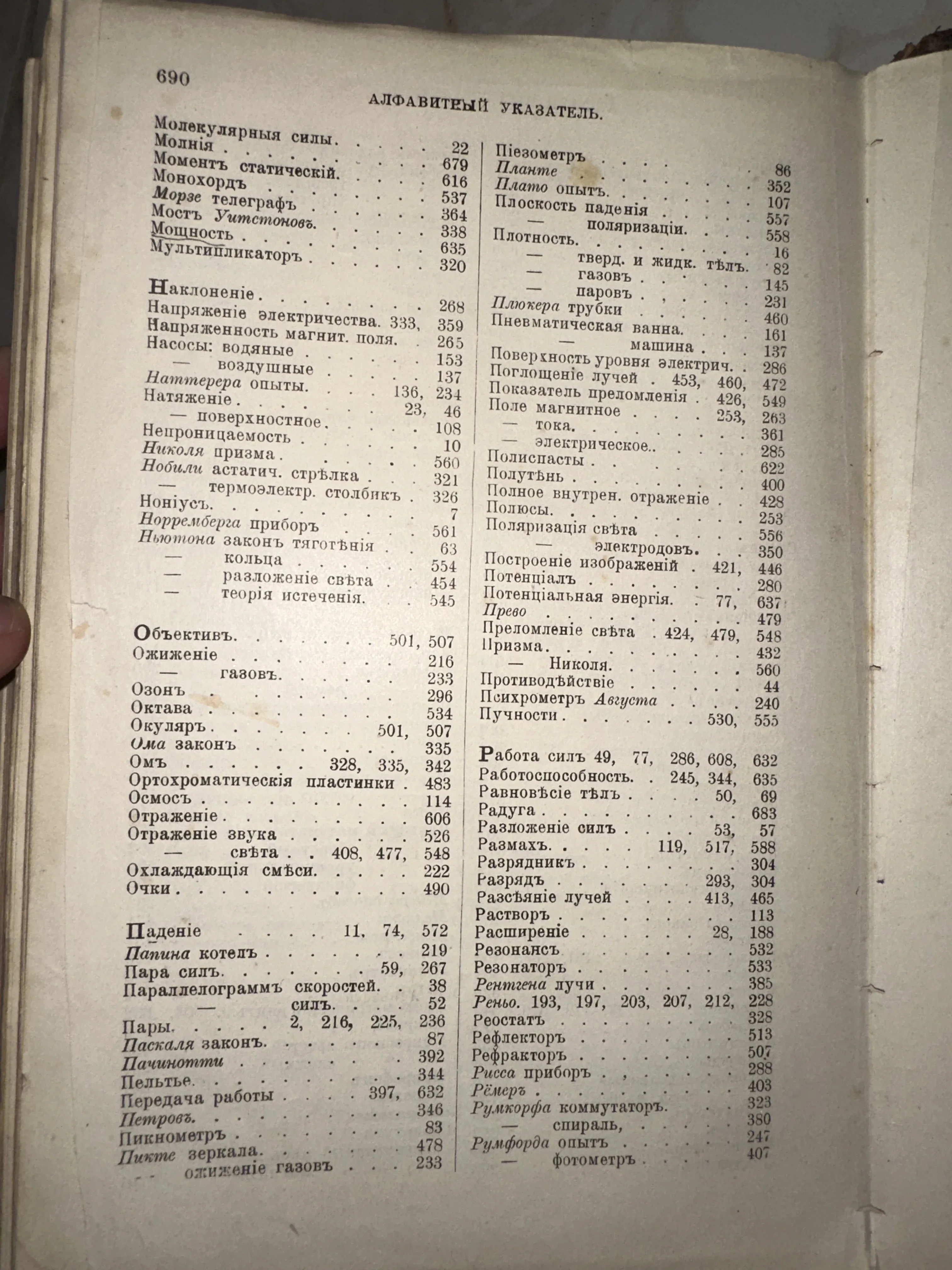 Алфавитный указатель из старинного научного издания