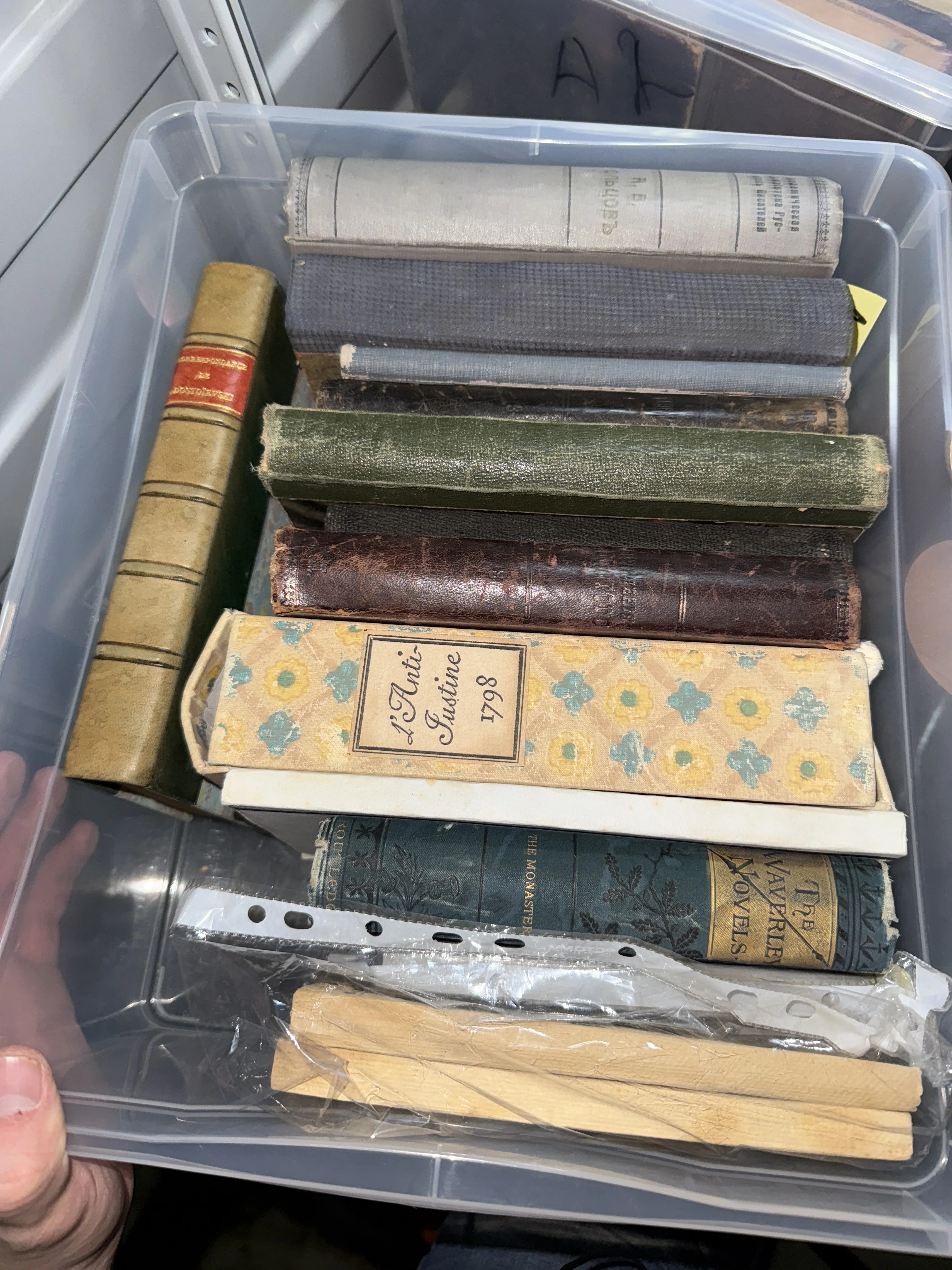 Впечатляющая подборка букинистических раритетов, среди которых выделяется провокационное издание 1798 года и классические тома в благородных переплетах. Потертая кожа, тиснение и сохранившаяся фактура бумаги передают неповторимую атмосферу старинных библиотек и частных коллекций. Каждая книга в этом собрании является не только историческим документом, но и изысканным предметом антикварного искусства.
