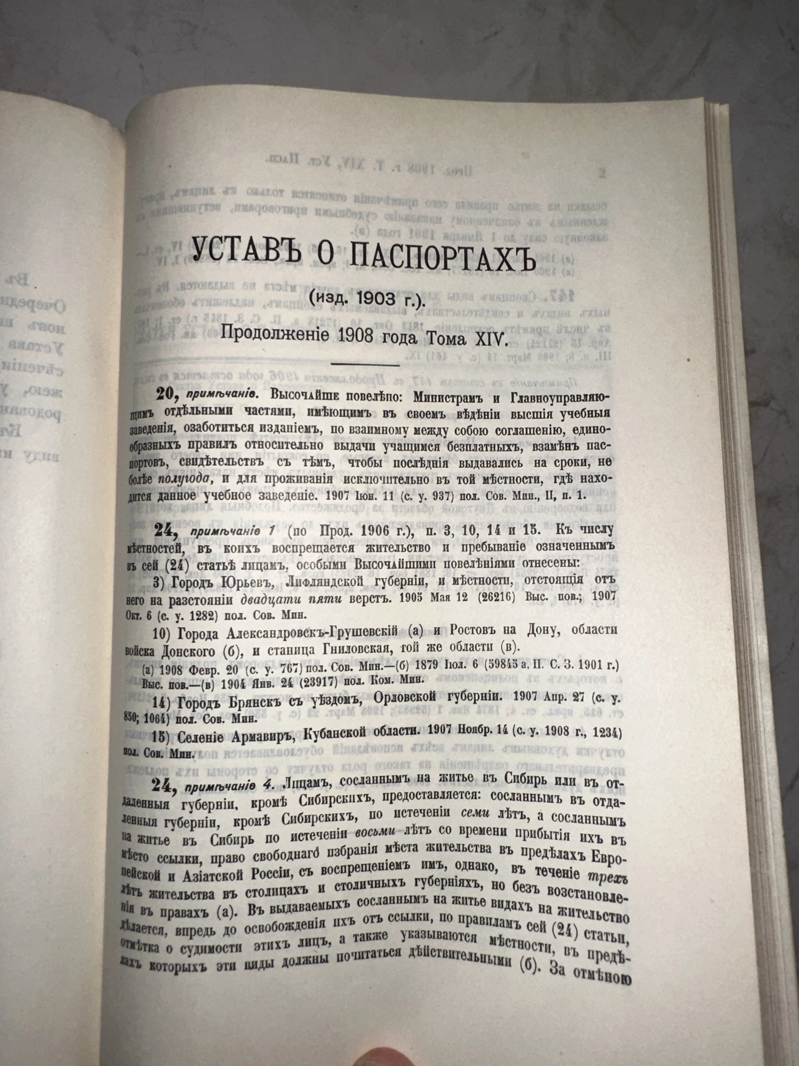 Устав о паспортах Российской Империи, издание 1903 года