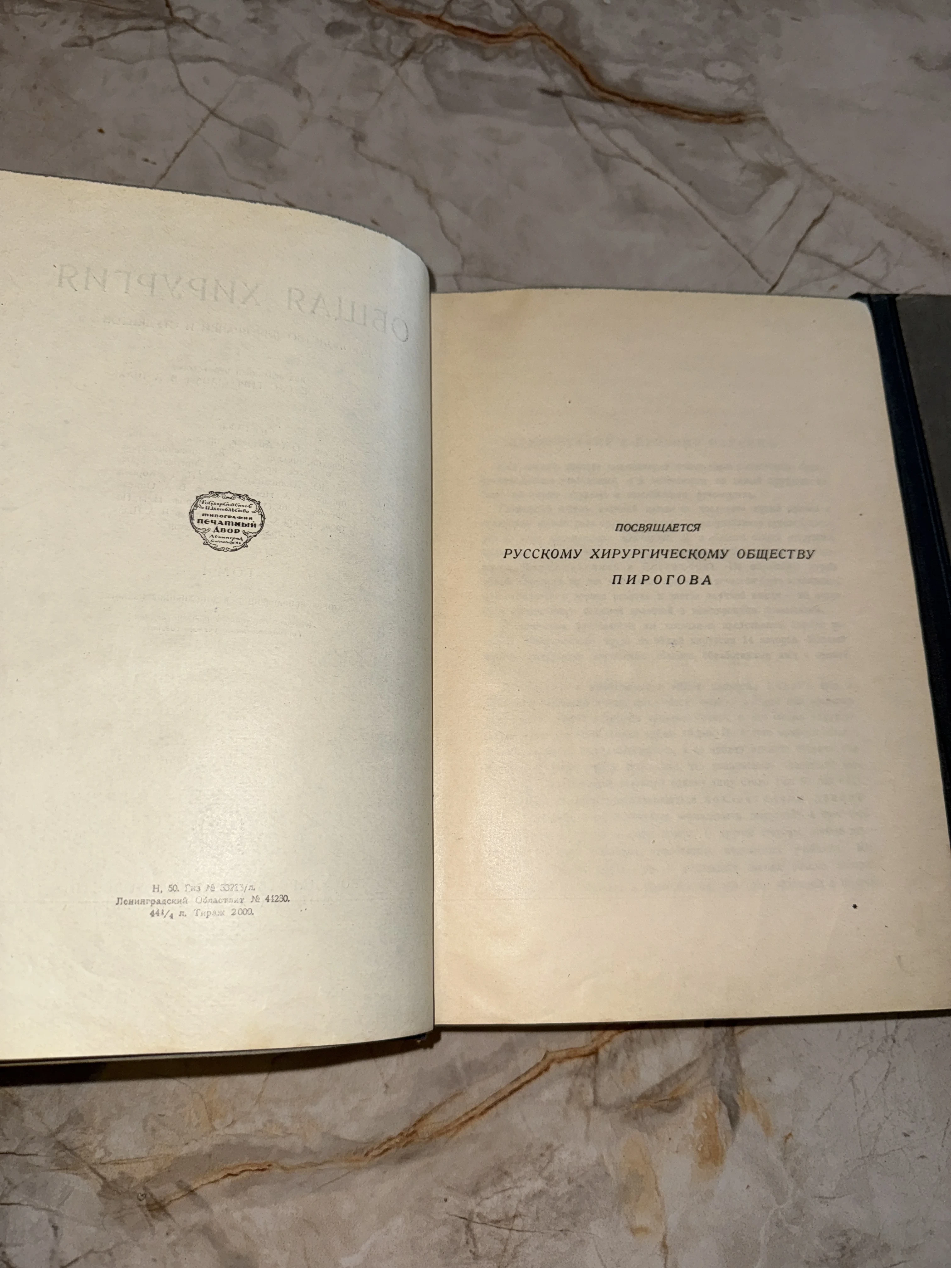 Редкое академическое издание, открывающееся торжественным посвящением легендарному Русскому хирургическому обществу имени Н.И. Пирогова. На странице сохранился четкий архивный штамп ленинградской типографии «Печатный Двор», а малый тираж в 2000 экземпляров подчеркивает коллекционную значимость предмета. Благородная патина времени на бумаге придает книге особую историческую достоверность и шарм старой научной школы.