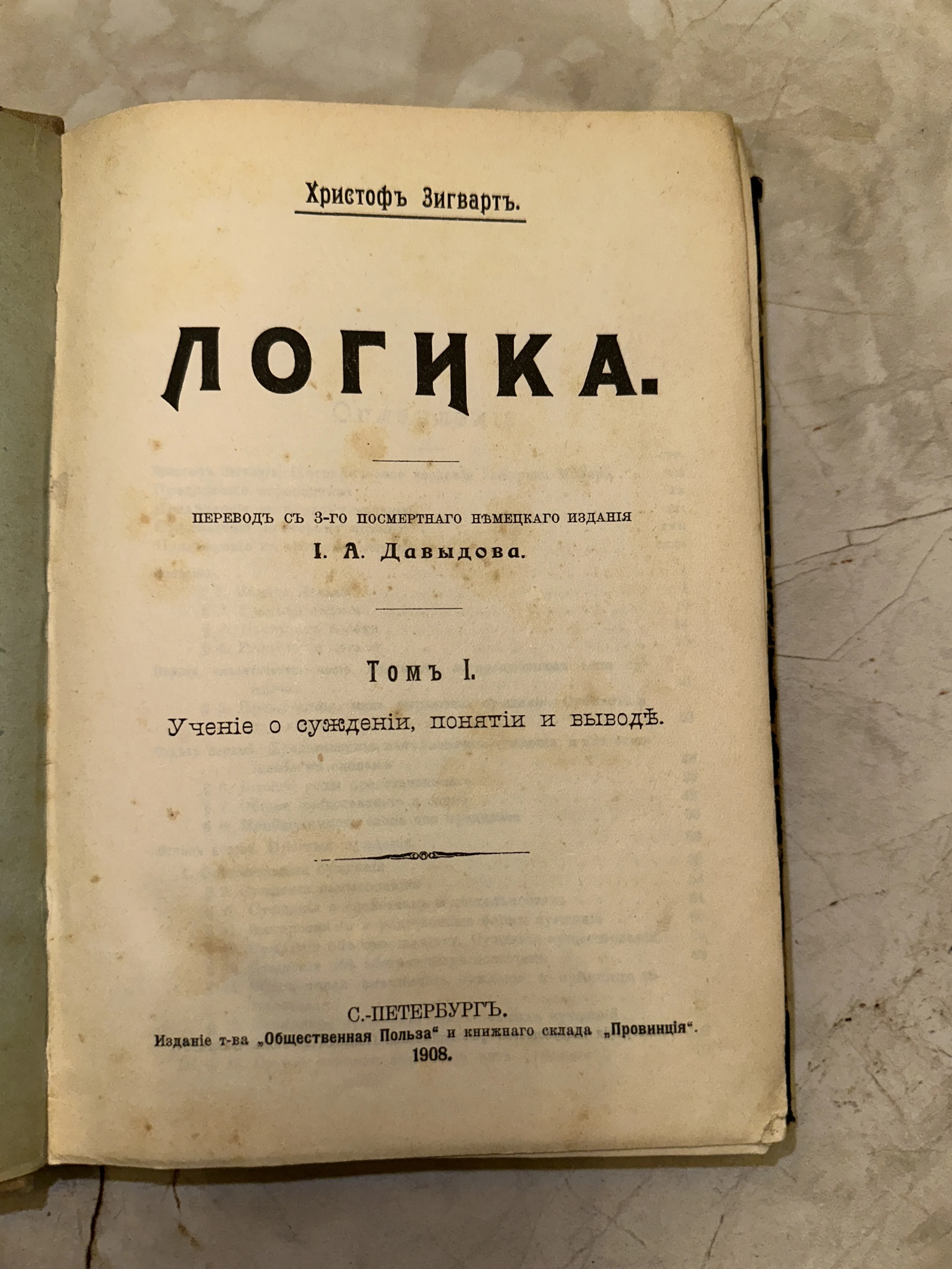 Книга «Логика» Христофа Зигварта, 1908 год