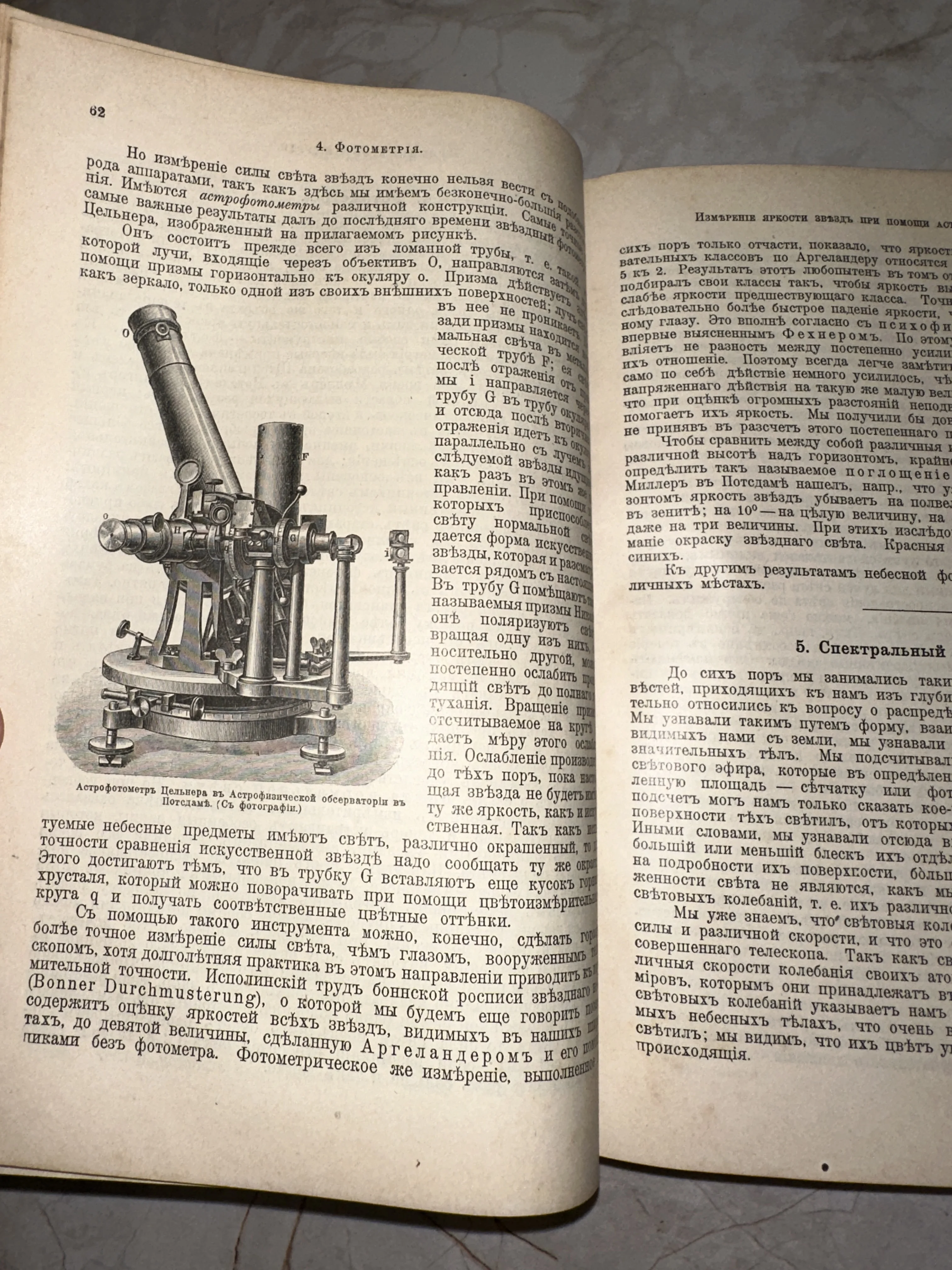 Старинное научное издание: раздел о фотометрии и звездных измерениях