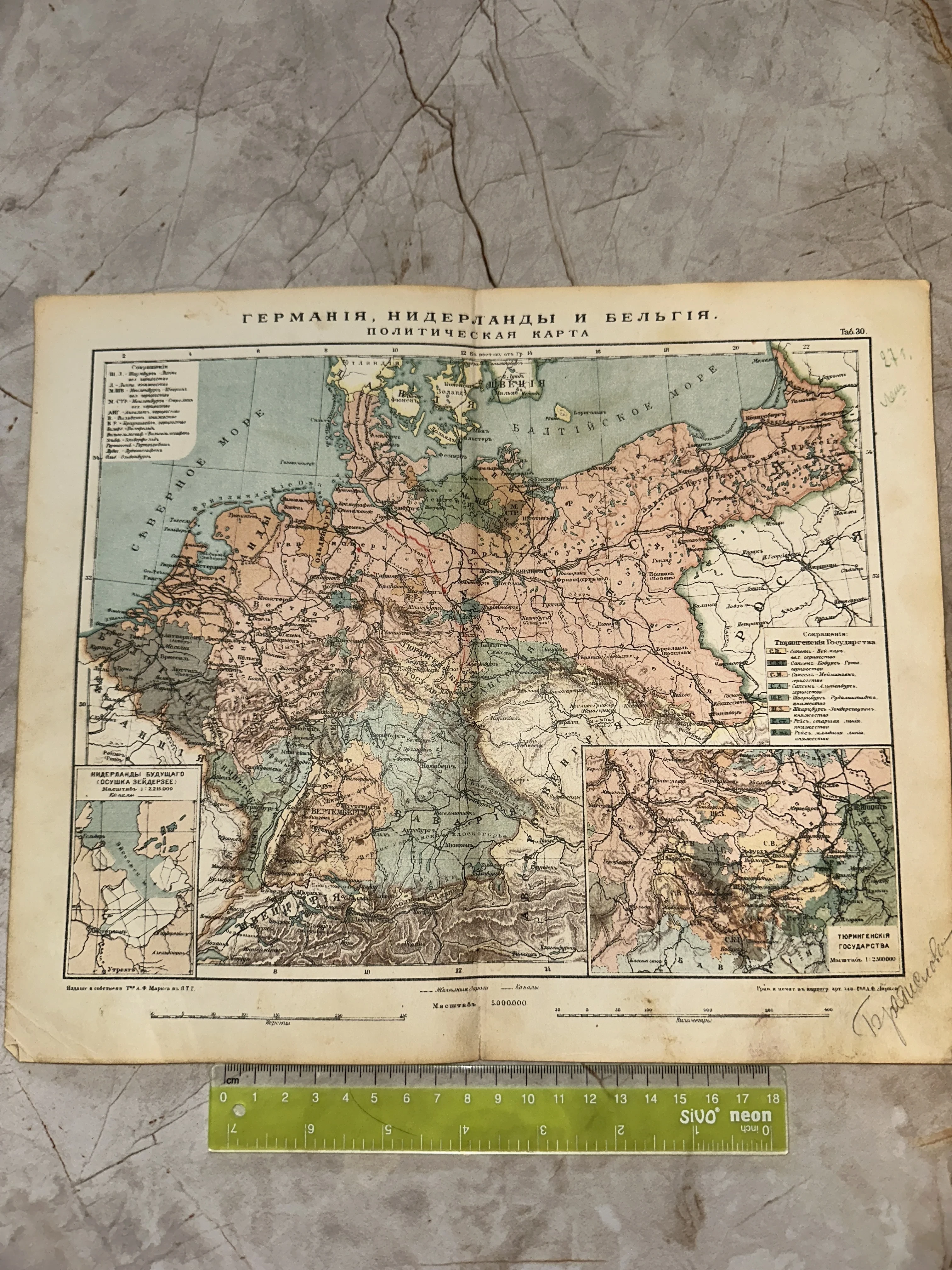 Старинная политическая карта Германии, Нидерландов и Бельгии