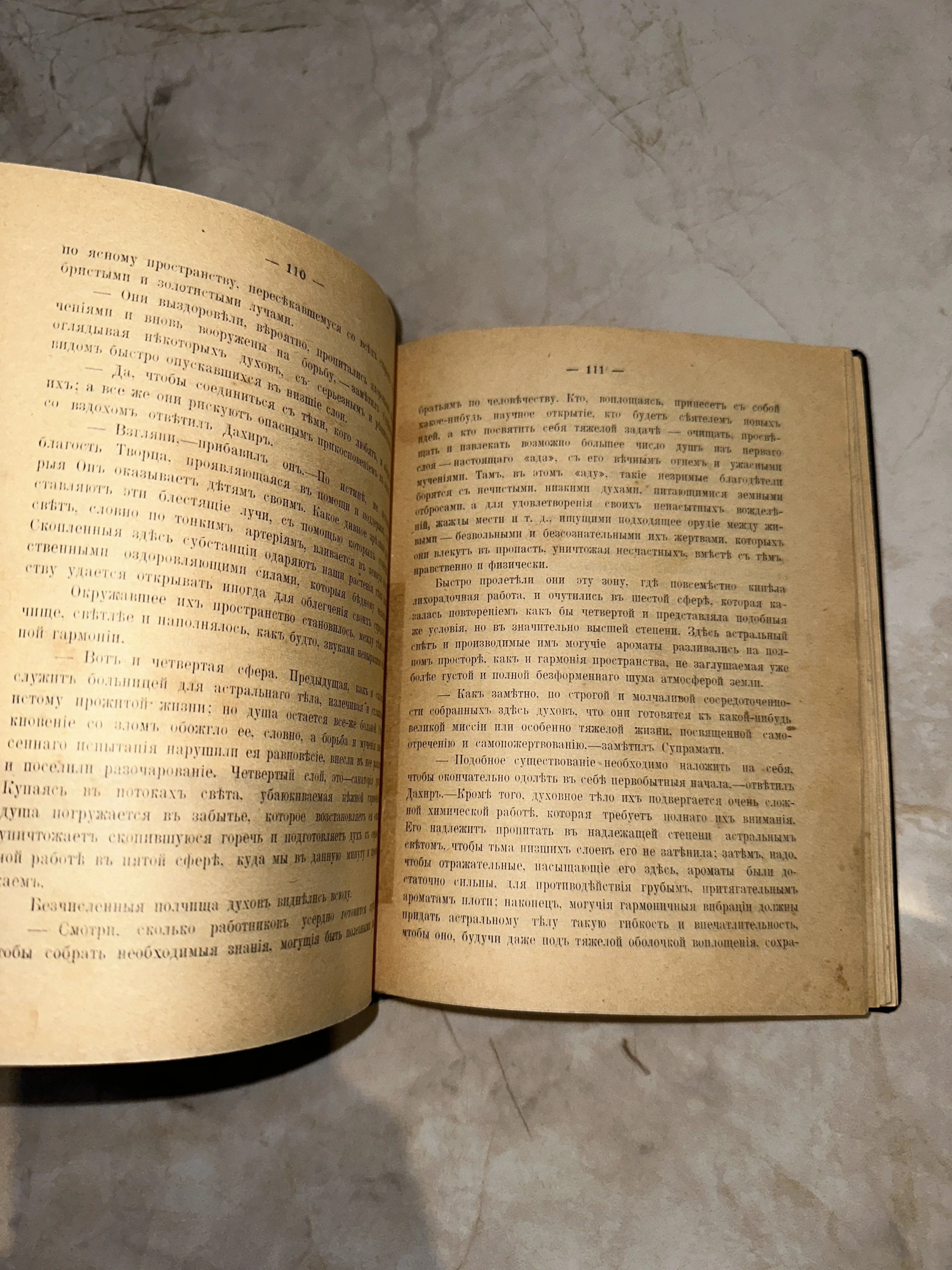 Перед вами подлинный фрагмент истории: страницы редкого издания, отпечатанного в дореволюционной орфографии с использованием «ятей» и «еров». Бумага сохранила благородную патину времени с легким крапом, а содержание погружает в мистические размышления о духовных сферах и астральном теле. Этот экземпляр станет ценным дополнением коллекции антикварной букинистики или вдохновляющим объектом для изучения русской философии начала XX века.
