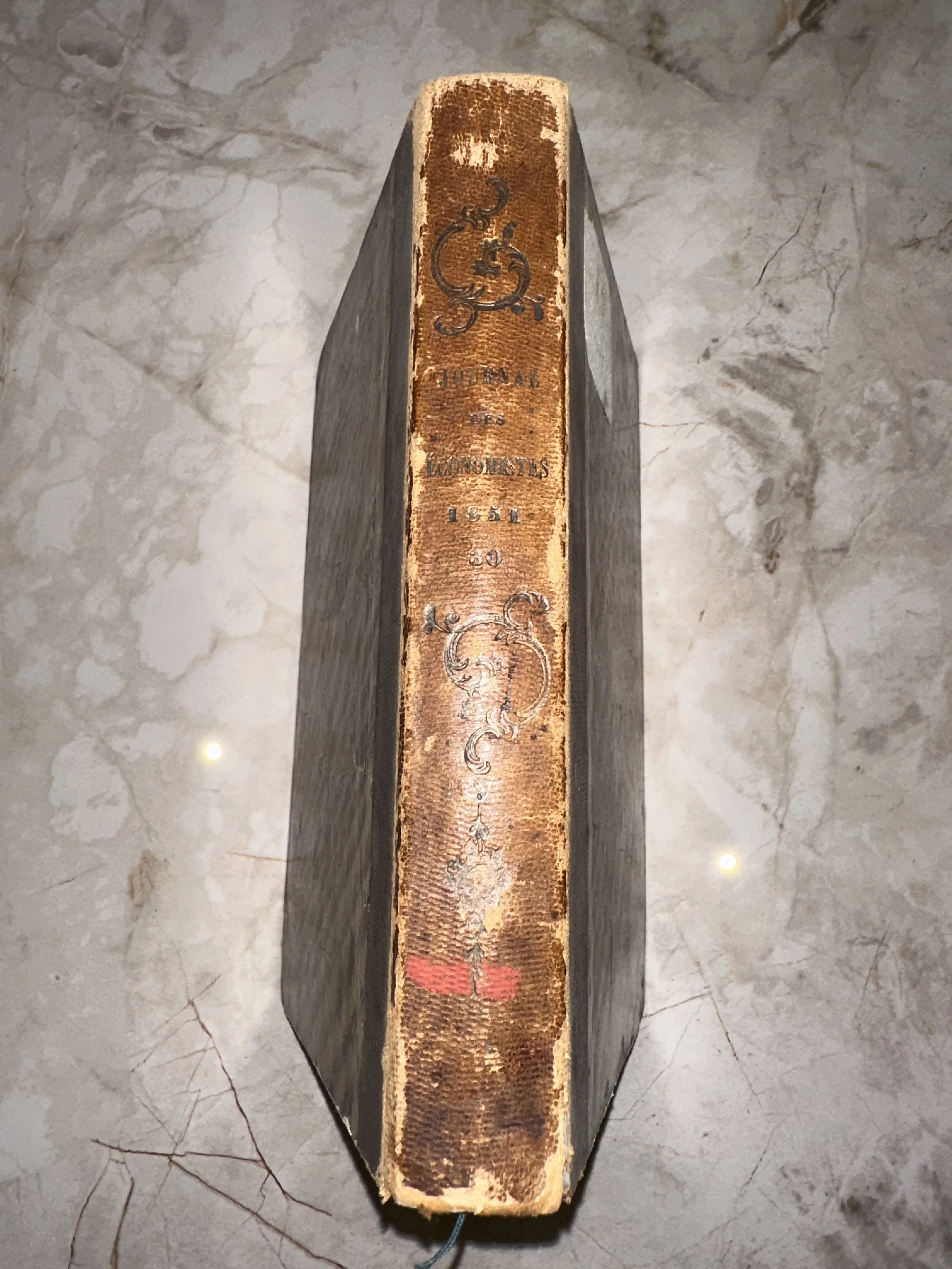 Редкий экземпляр французского экономического ежемесячника середины XIX века в аутентичном полукожаном переплете. Благородная патина, потертости на ребрах и изящное золотое тиснение на корешке создают неповторимую атмосферу старины. Это издание станет достойным украшением кабинета и ценным приобретением для коллекционера редкой периодики.