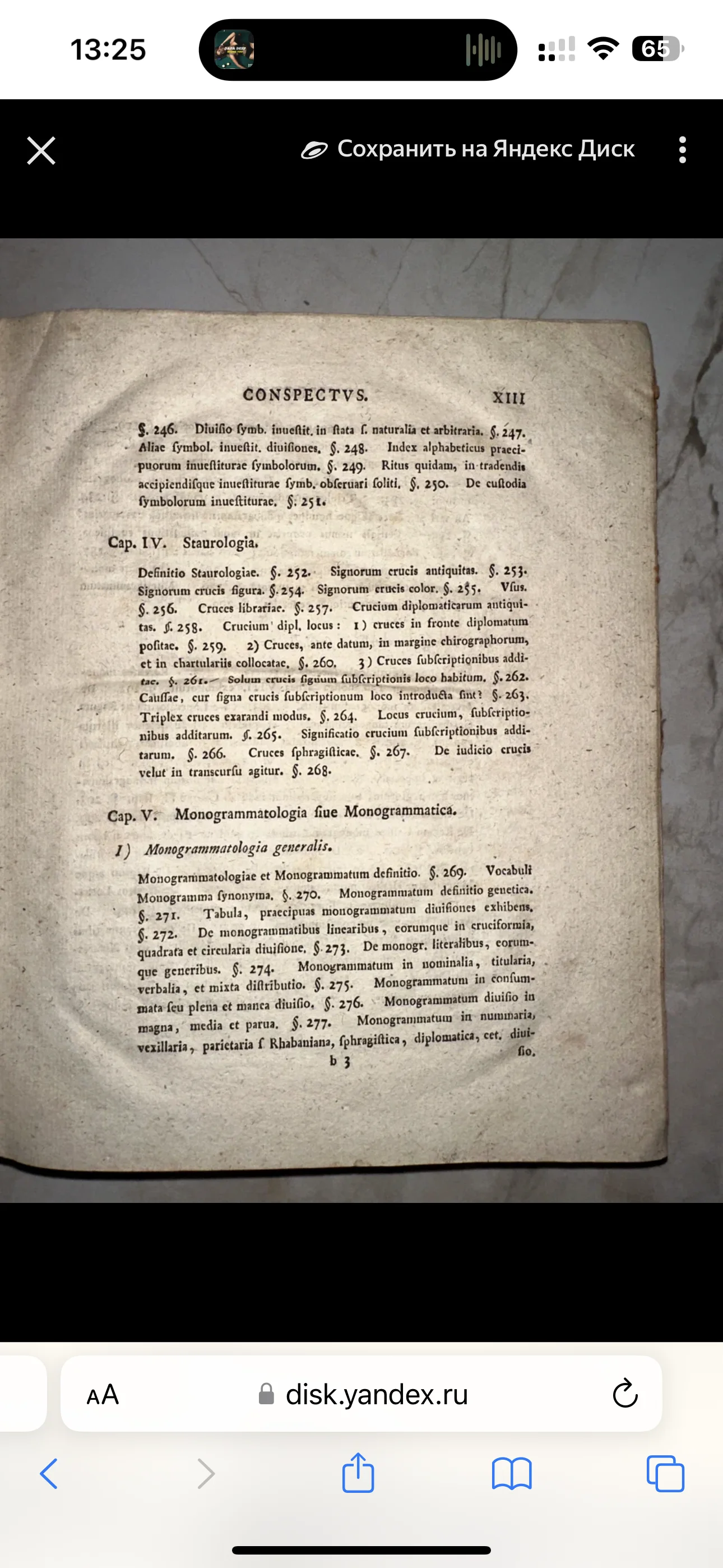 Аутентичный оттиск из академического издания, посвященного символике и геральдике, сохранивший благородную патину времени. Текст набран классическим антиквенным шрифтом на плотной бумаге ручного отлива с характерной текстурой. Предмет представляет коллекционный интерес для исследователей теологии, истории и латинской палеографии.