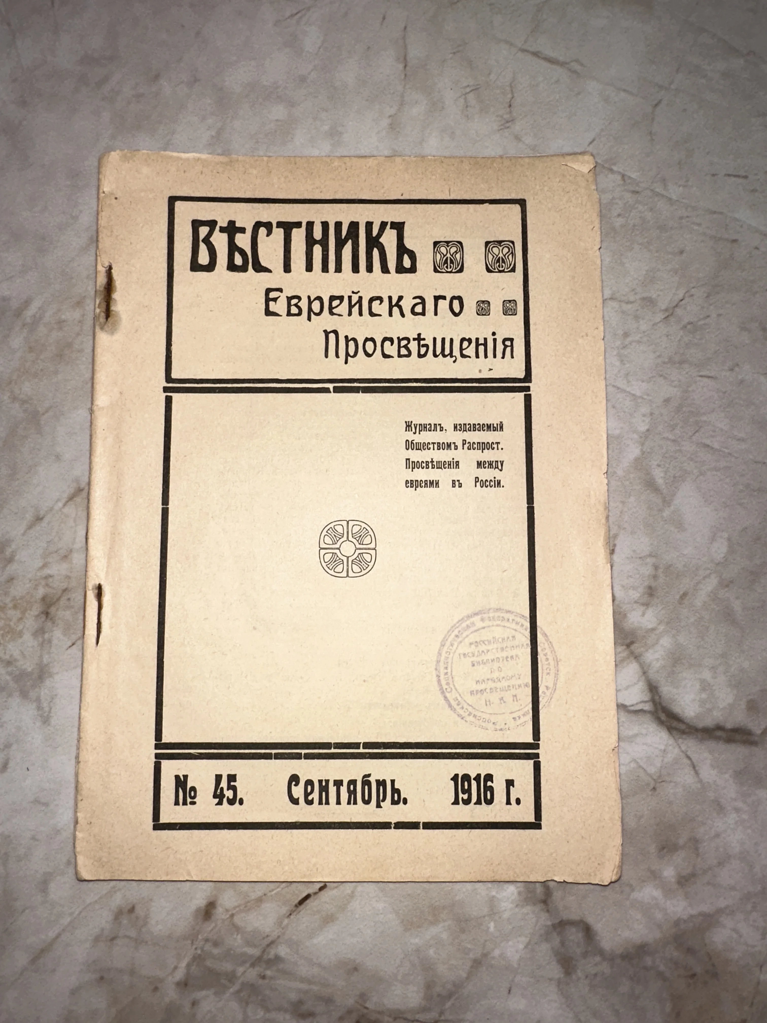 Журнал «Вестник еврейского просвещения», № 45, сентябрь 1916 года