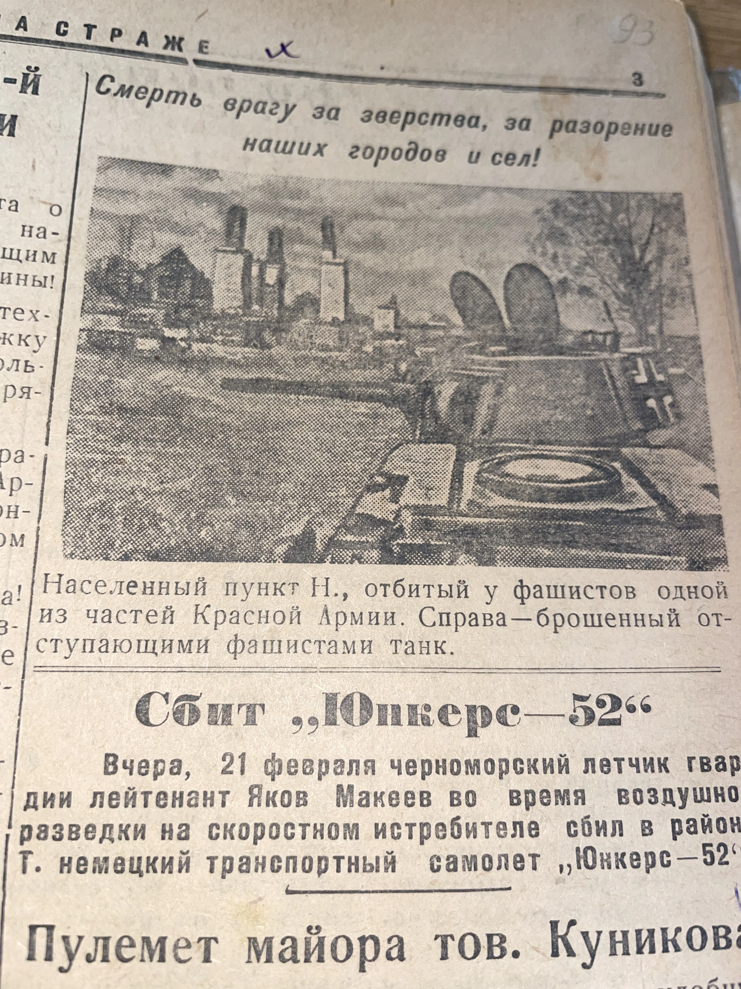 Страница фронтовой газеты «На страже», период ВОВ