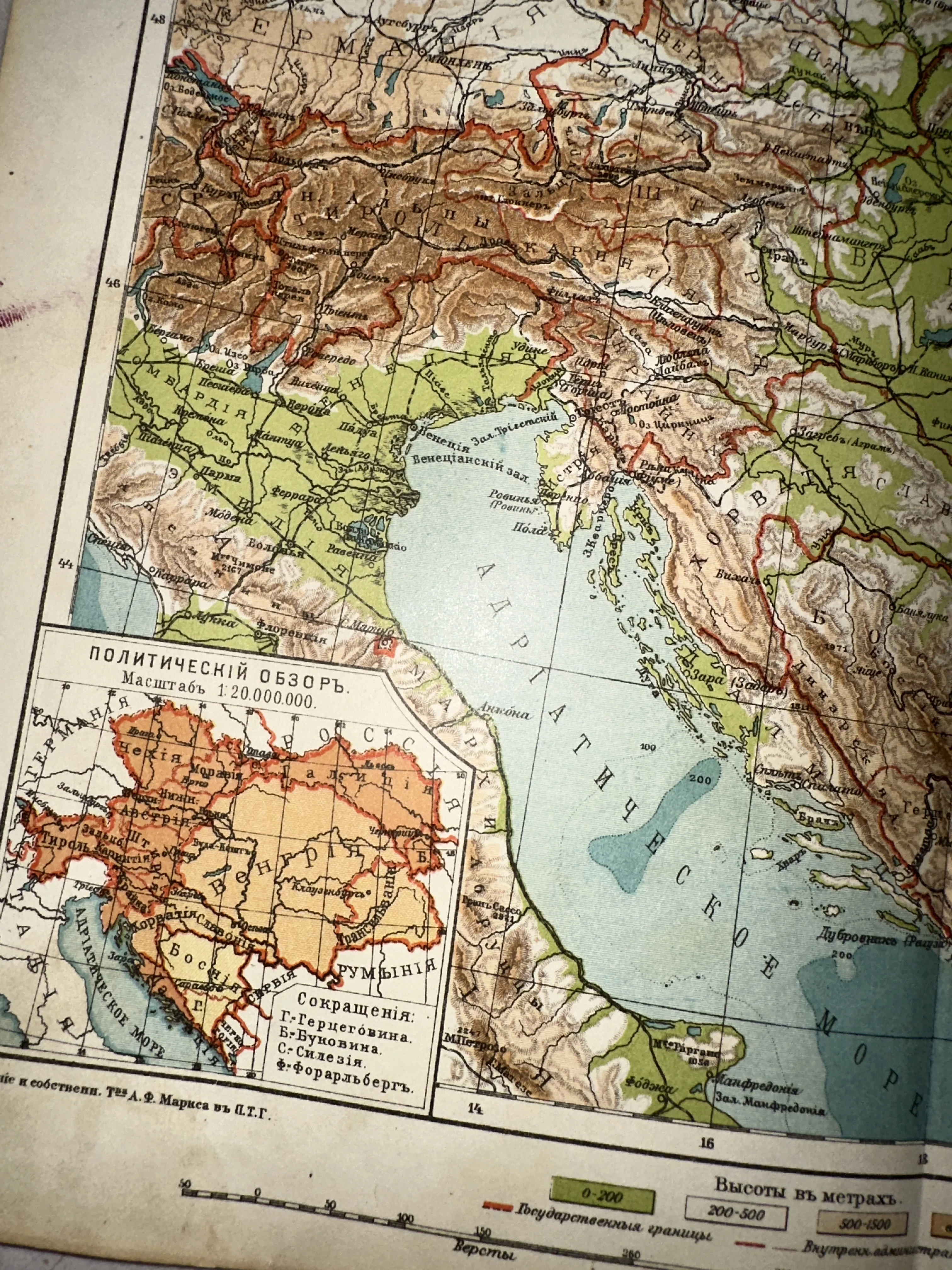 Антикварная карта Адриатического моря и Австро-Венгрии