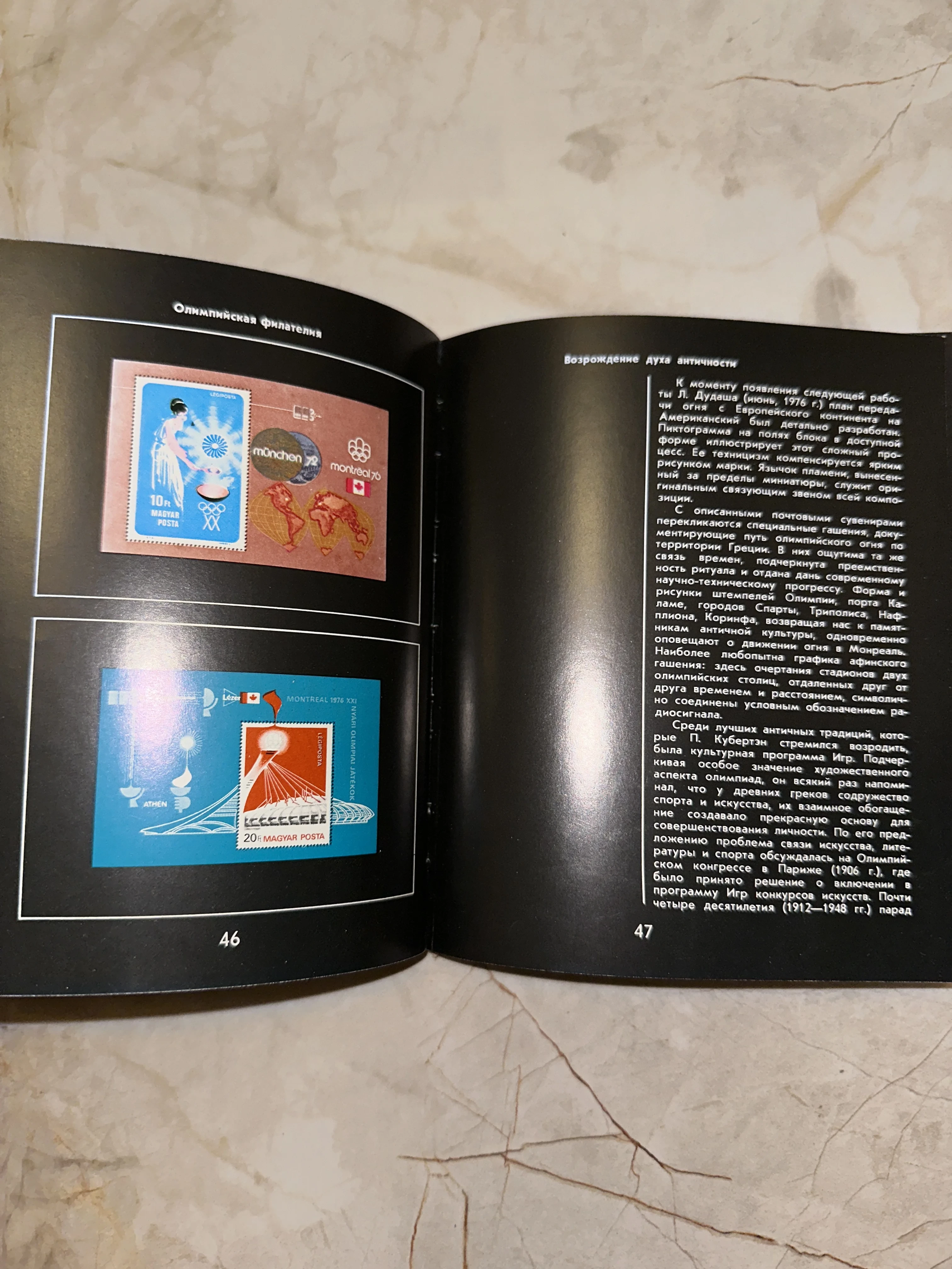 Уникальный справочник, погружающий в мир спортивной истории через призму филателии. На страницах представлены яркие образцы венгерских марок 1970-х годов с изящной графикой и олимпийской символикой на глубоком черном фоне. Издание прекрасно сохранилось и станет ценным приобретением для коллекционеров и любителей истории спорта.