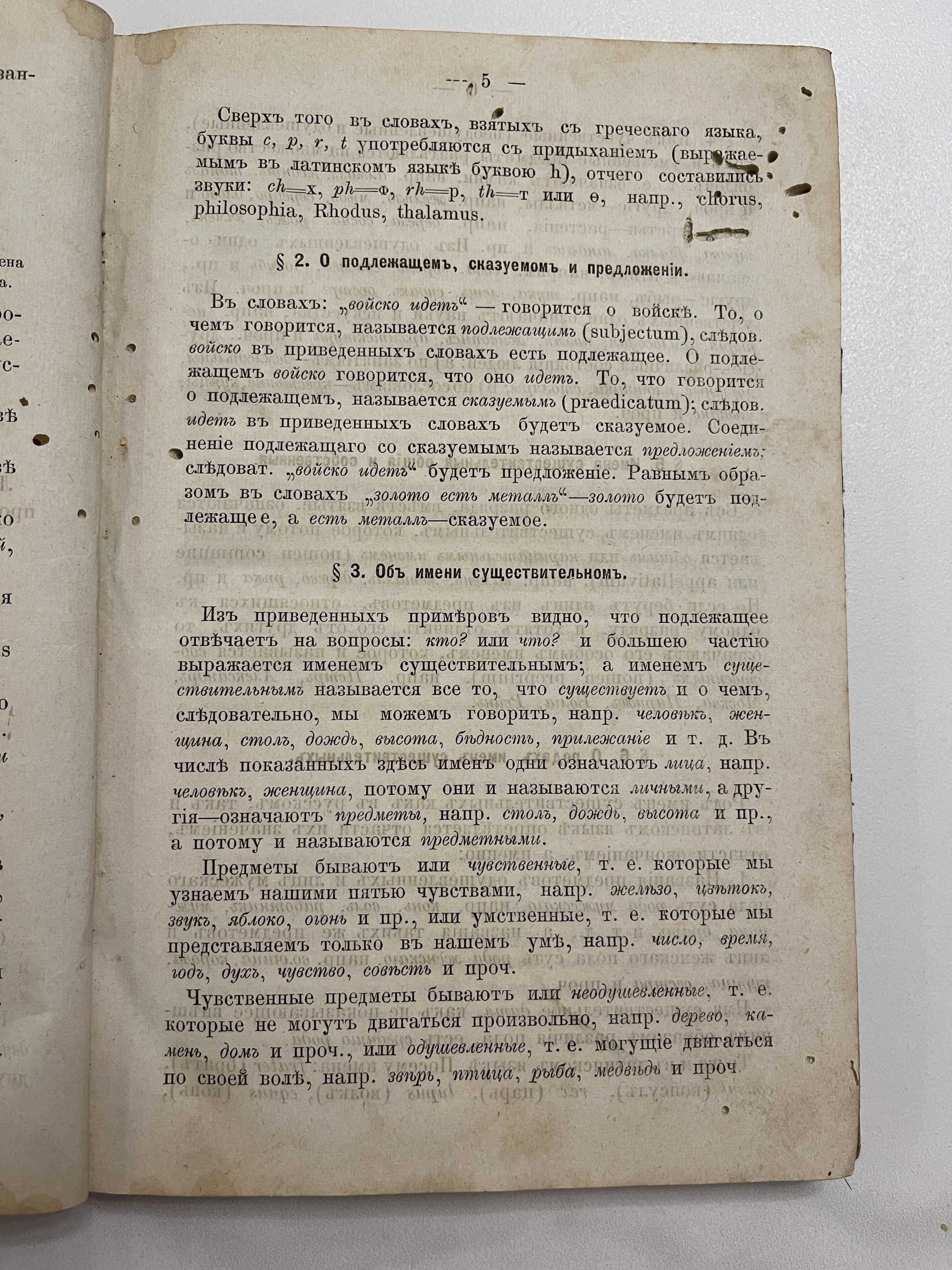 Уникальный образец дореволюционной полиграфии: страница старинного учебного пособия с классической орфографией и ятями. Характерная пожелтевшая бумага со следами времени и четкий академический шрифт переносят в атмосферу гимназического класса позапрошлого столетия.