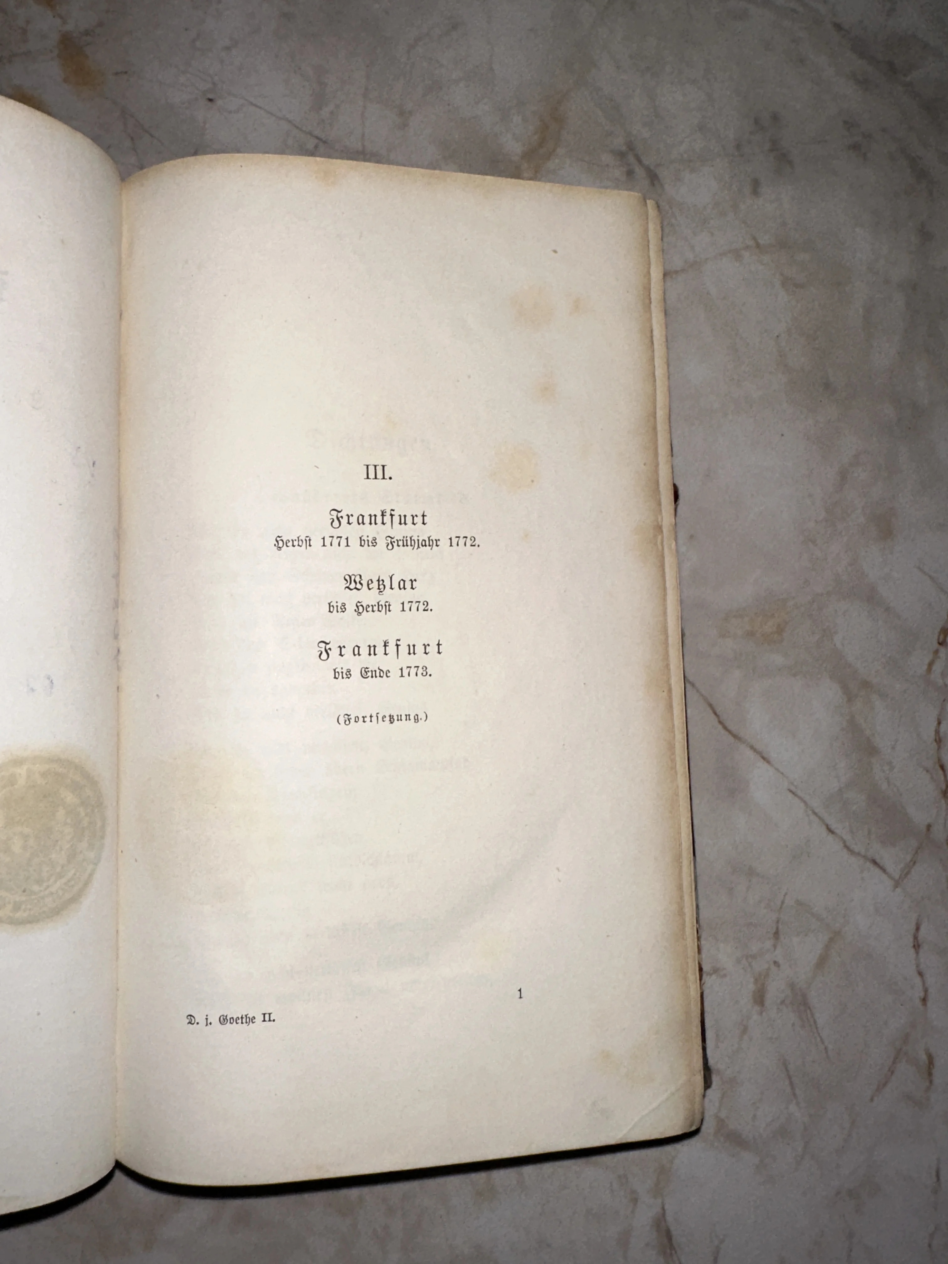 Страница антикварного издания Иоганна Вольфганга Гёте