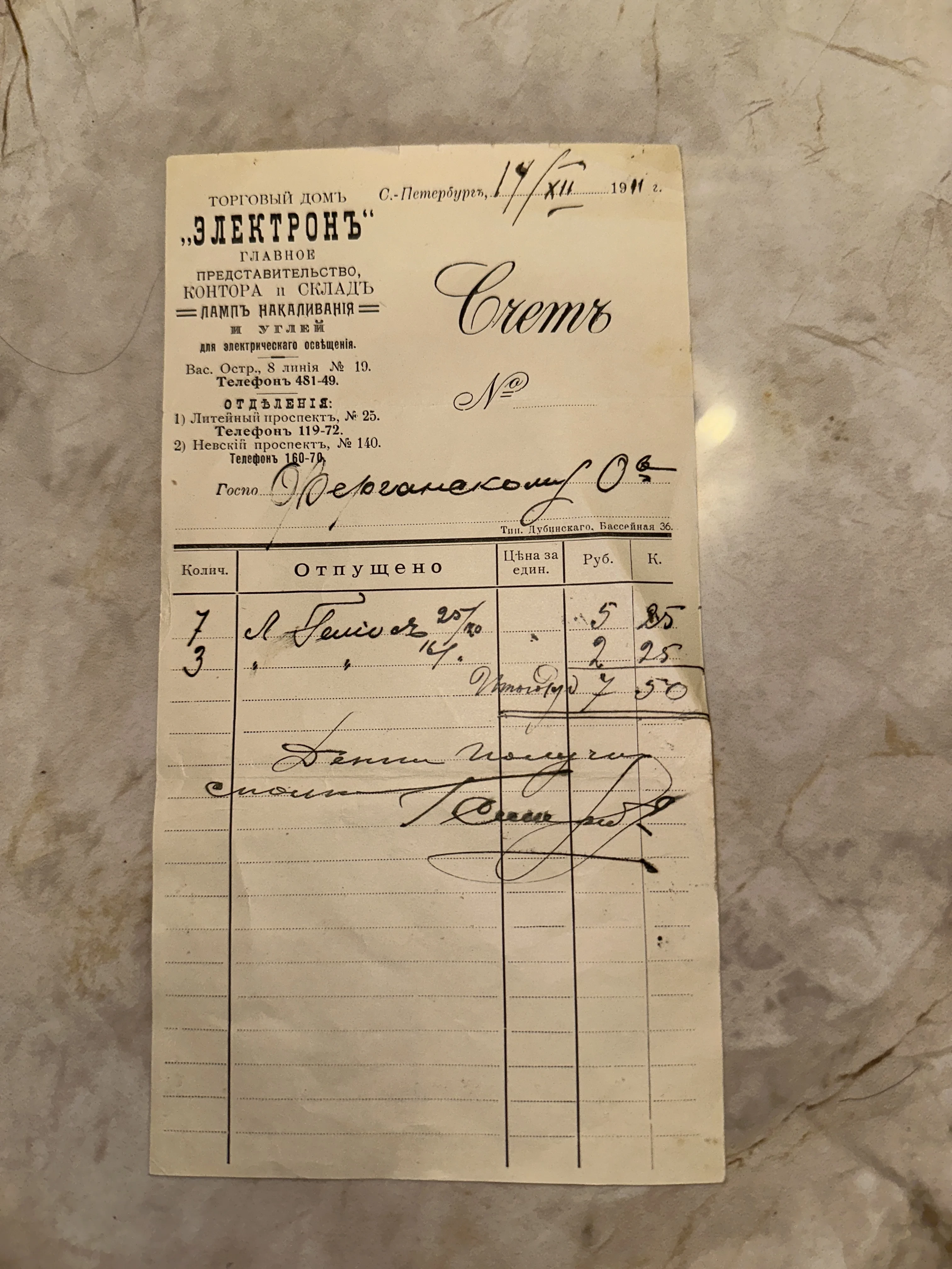 Счёт Торгового дома «Электронъ», Санкт-Петербург, 1911 год