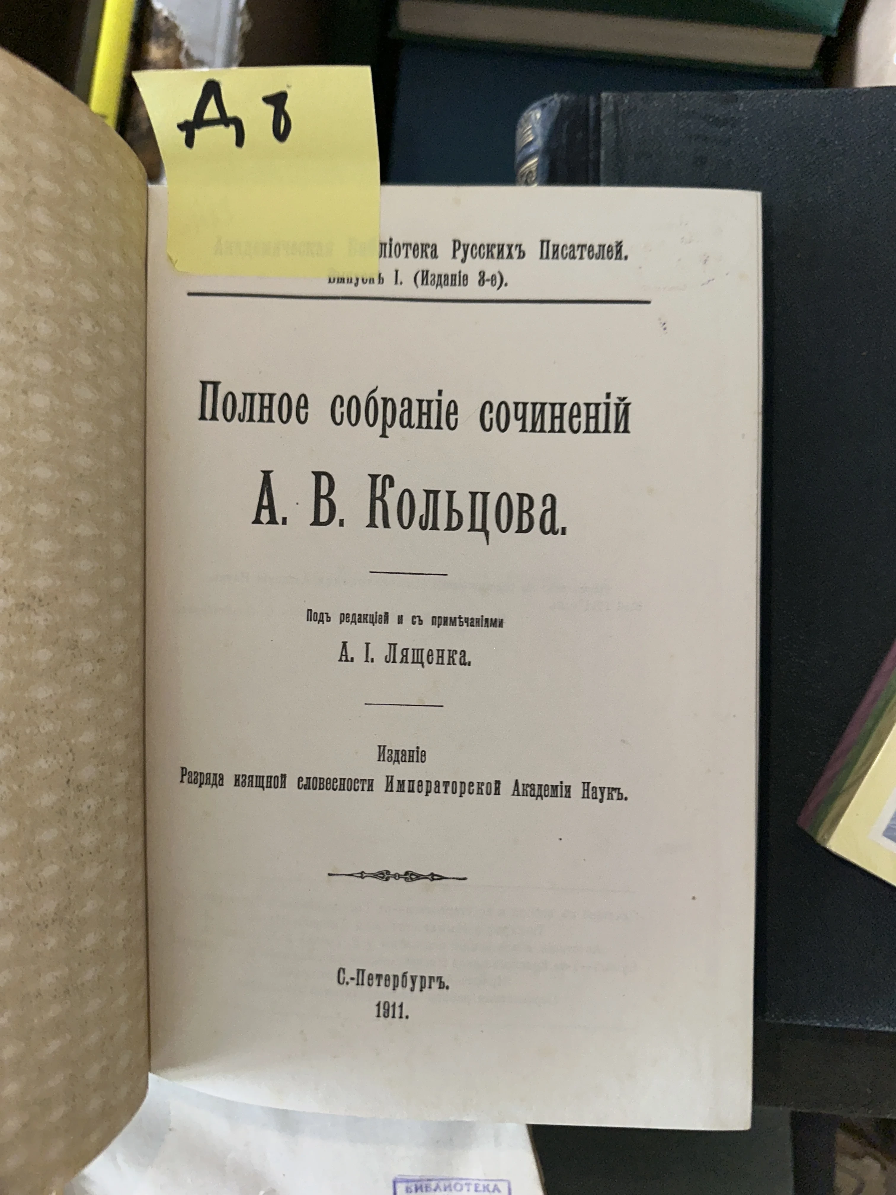 Полное собрание сочинений А. В. Кольцова, 1911 год