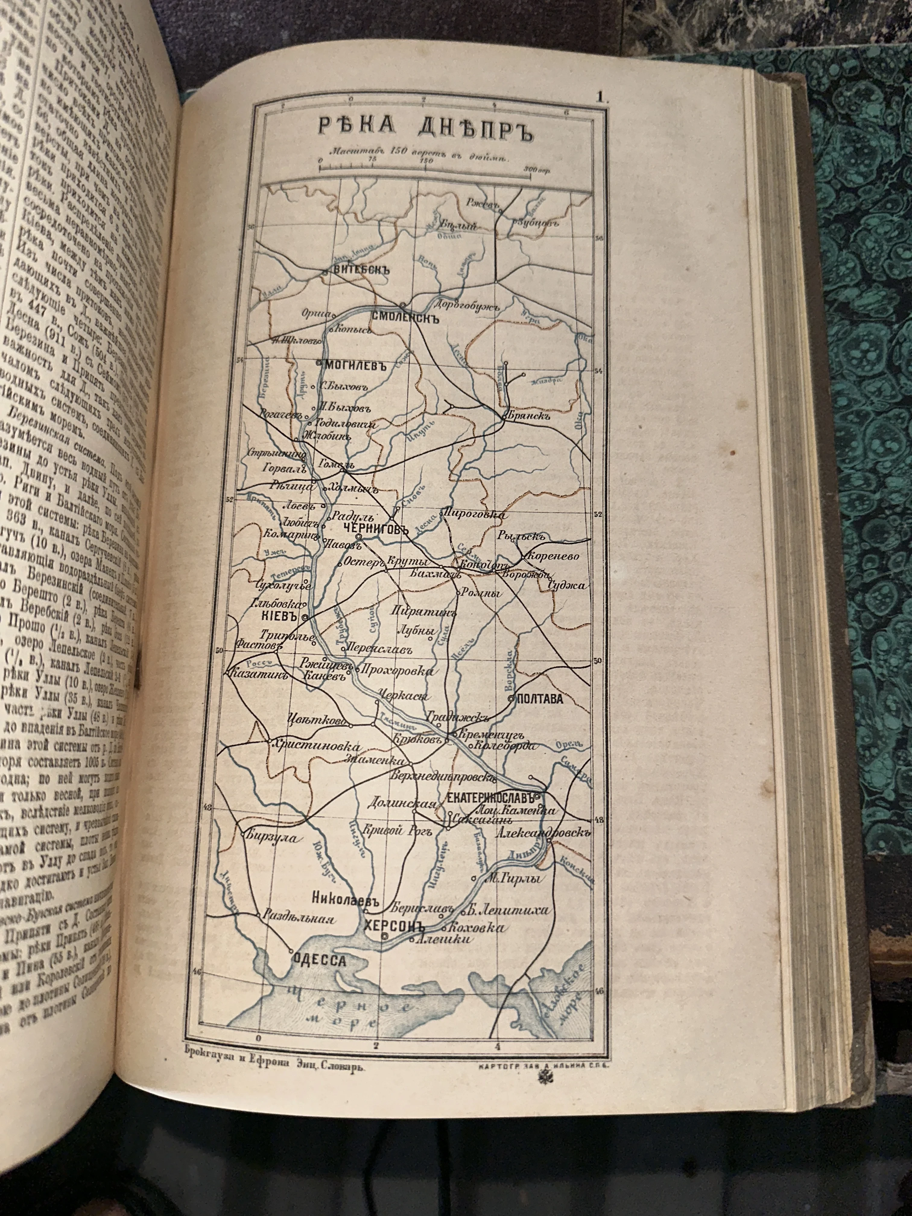 Старинная карта реки Днепр из словаря Брокгауза и Ефрона