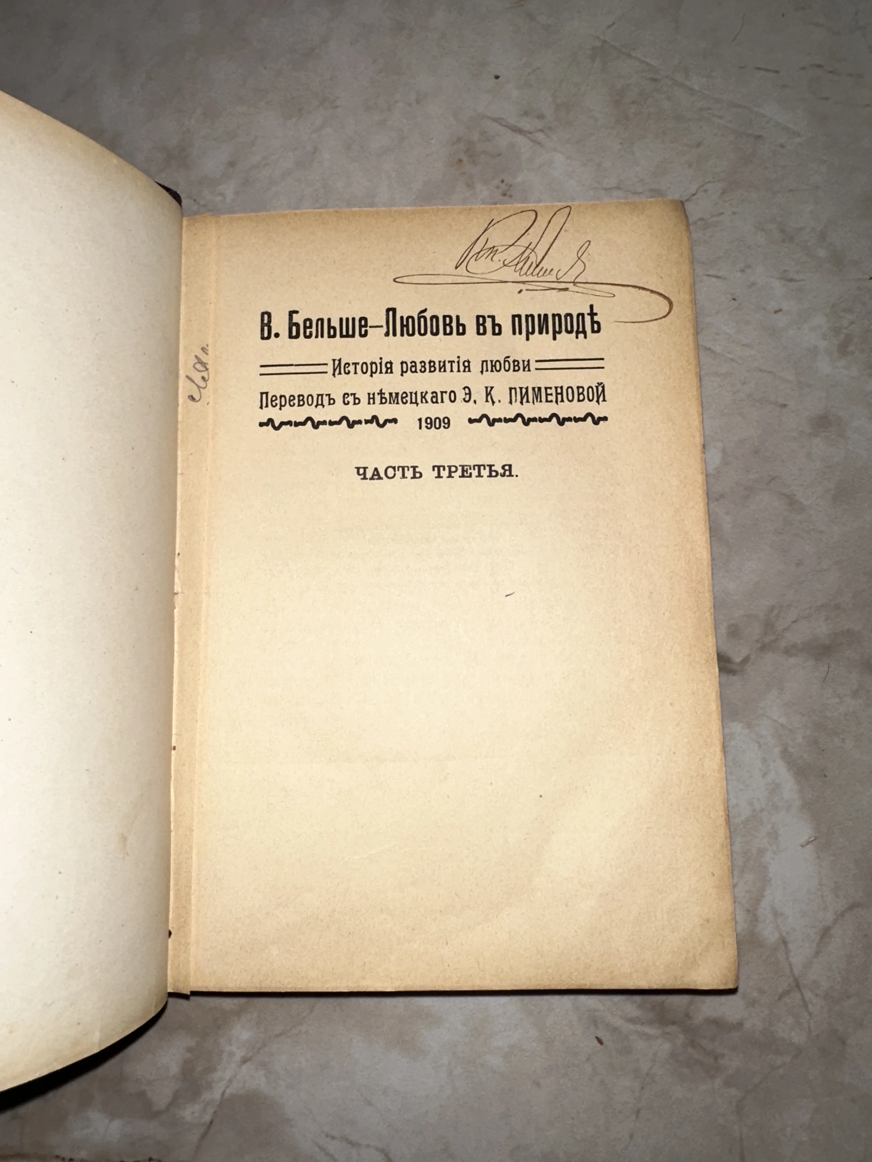 Перед вами редкий экземпляр дореволюционного издания, сохранивший дух эпохи благодаря пожелтевшим от времени страницам и изящной дореформенной орфографии. Особый шарм предмету придает аутентичная владельческая подпись чернилами на титульном листе, превращающая книгу в уникальный исторический артефакт. Третья часть фундаментального труда Бёльше станет достойным пополнением библиотеки ценителя старинной научной литературы.
