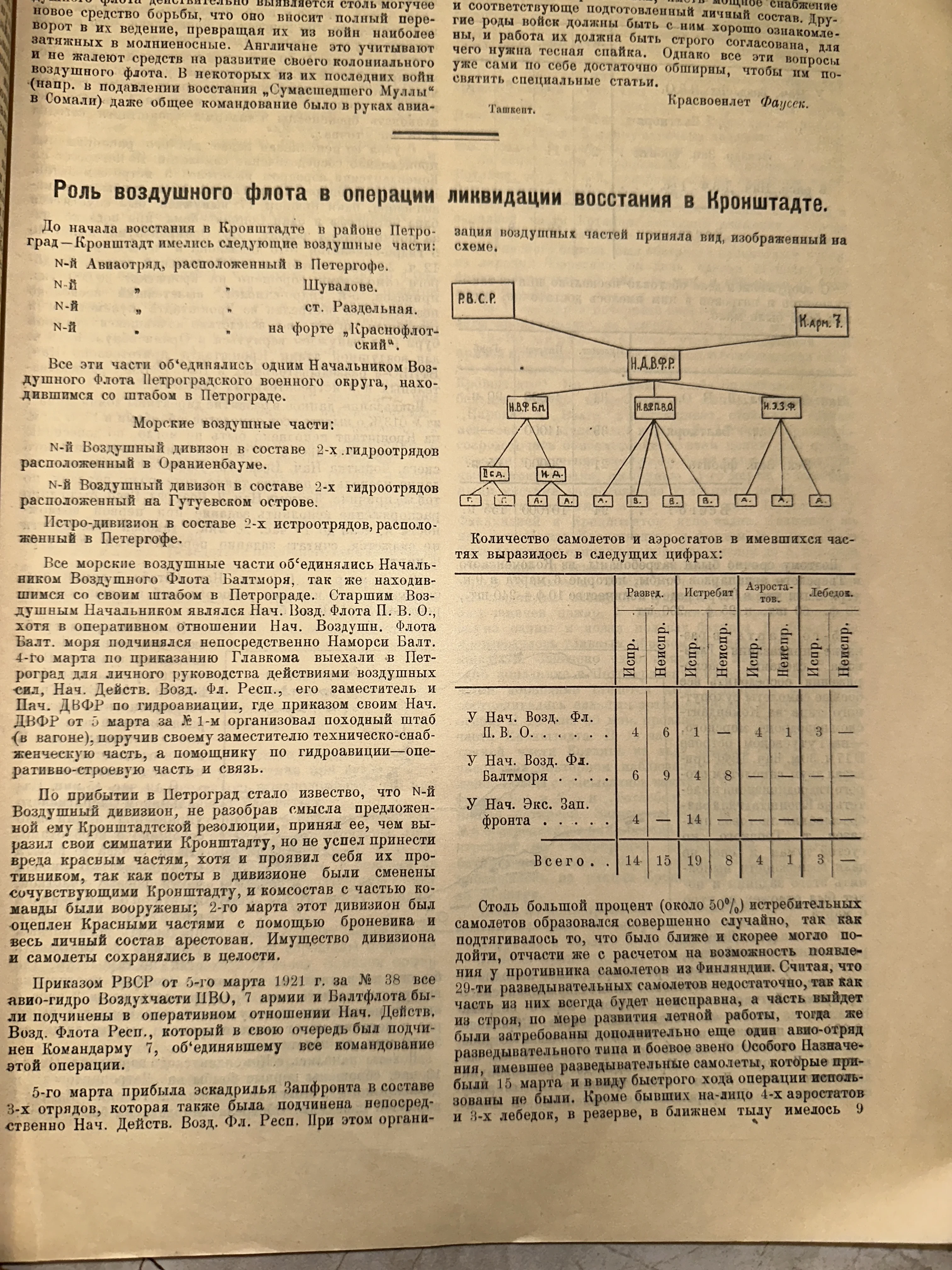 Этот редкий печатный лист — живое свидетельство переломных моментов истории, запечатлевшее роль авиации в событиях 1921 года. Сохранность бумаги позволяет детально изучить не только текст, но и уникальные схемы и таблицы, отражающие военную логистику раннесоветского периода. Настоящая находка для коллекционеров милитарии и исследователей истории Кронштадтского восстания.