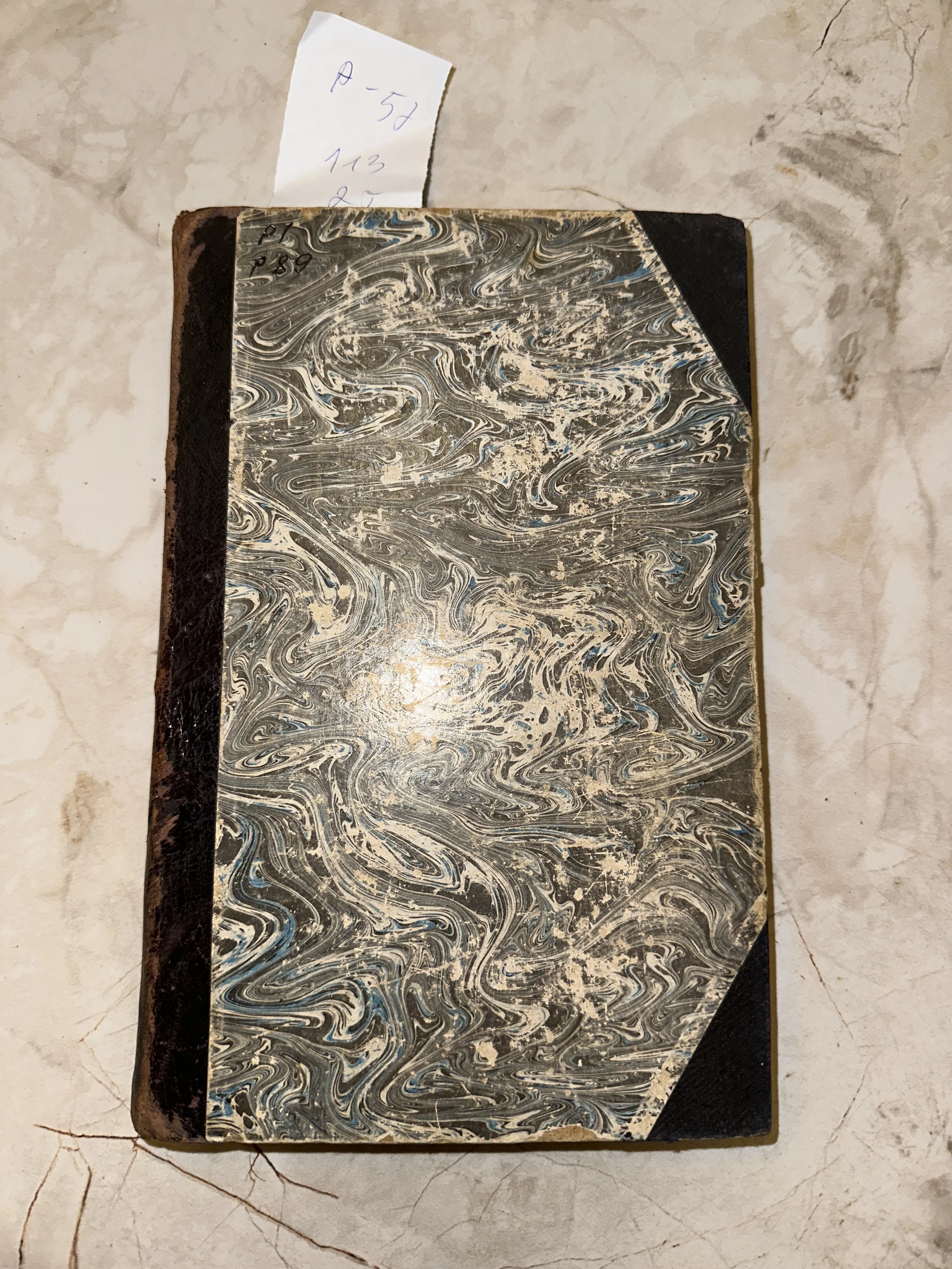 Антикварная книга в полукожаном переплете с обложкой из мраморной бумаги ручной работы.