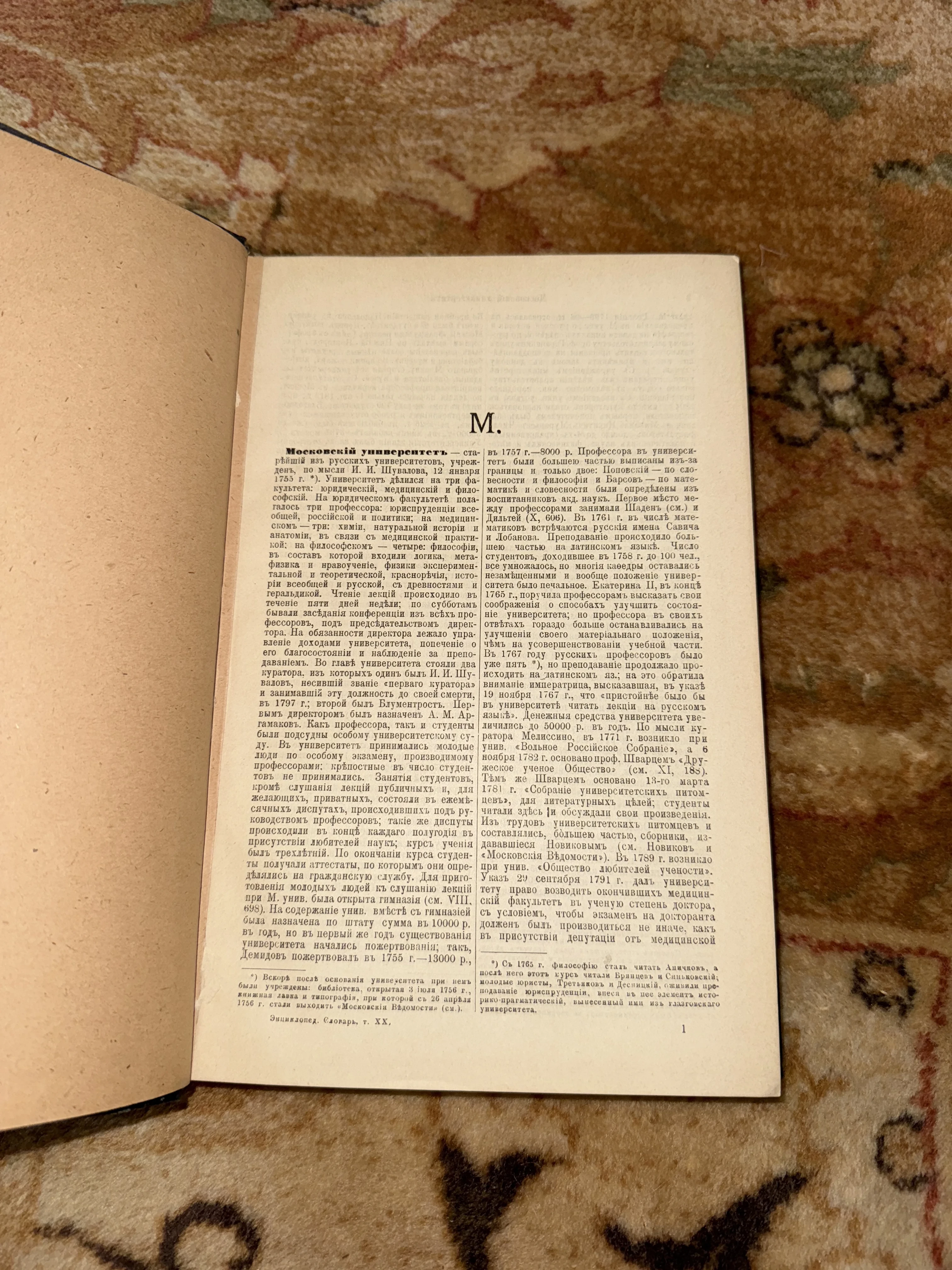 Подлинный фрагмент истории российского просвещения, напечатанный в знаменитом энциклопедическом словаре Брокгауза и Ефрона. Текст на пожелтевшей бумаге сохранил дух имперской эпохи и детально описывает становление старейшего университета страны. Идеальный предмет для оформления тематического интерьера или пополнения частной библиотеки.