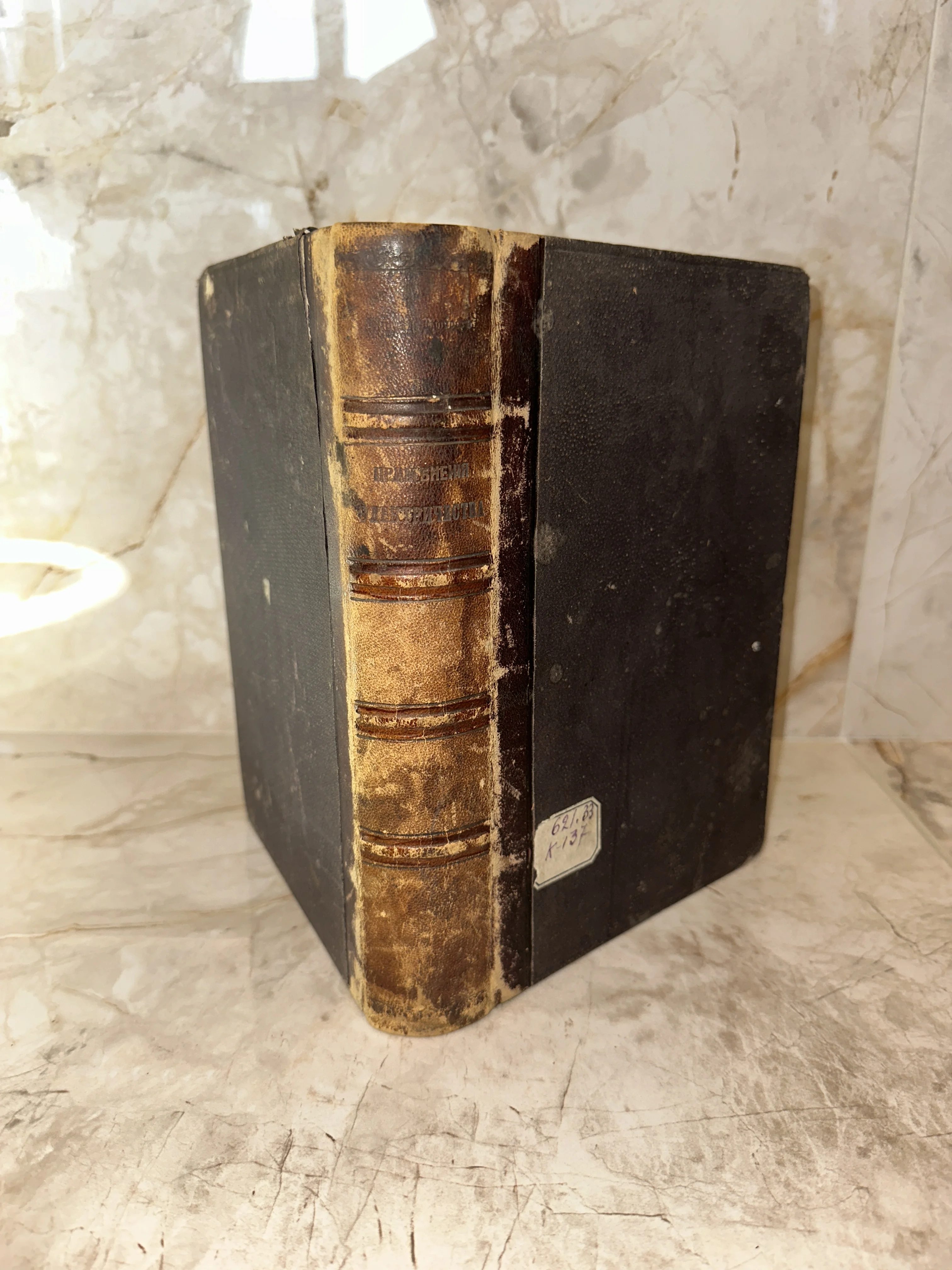 Этот величественный фолиант с массивным корешком и благородной патиной времени станет жемчужиной любой частной коллекции. Характерные потертости кожи и старинная библиотечная метка подчеркивают богатую историю издания, приглашая прикоснуться к тайнам прошлого. Книга сохранила свою монументальность и станет идеальным акцентом в классическом интерьере.