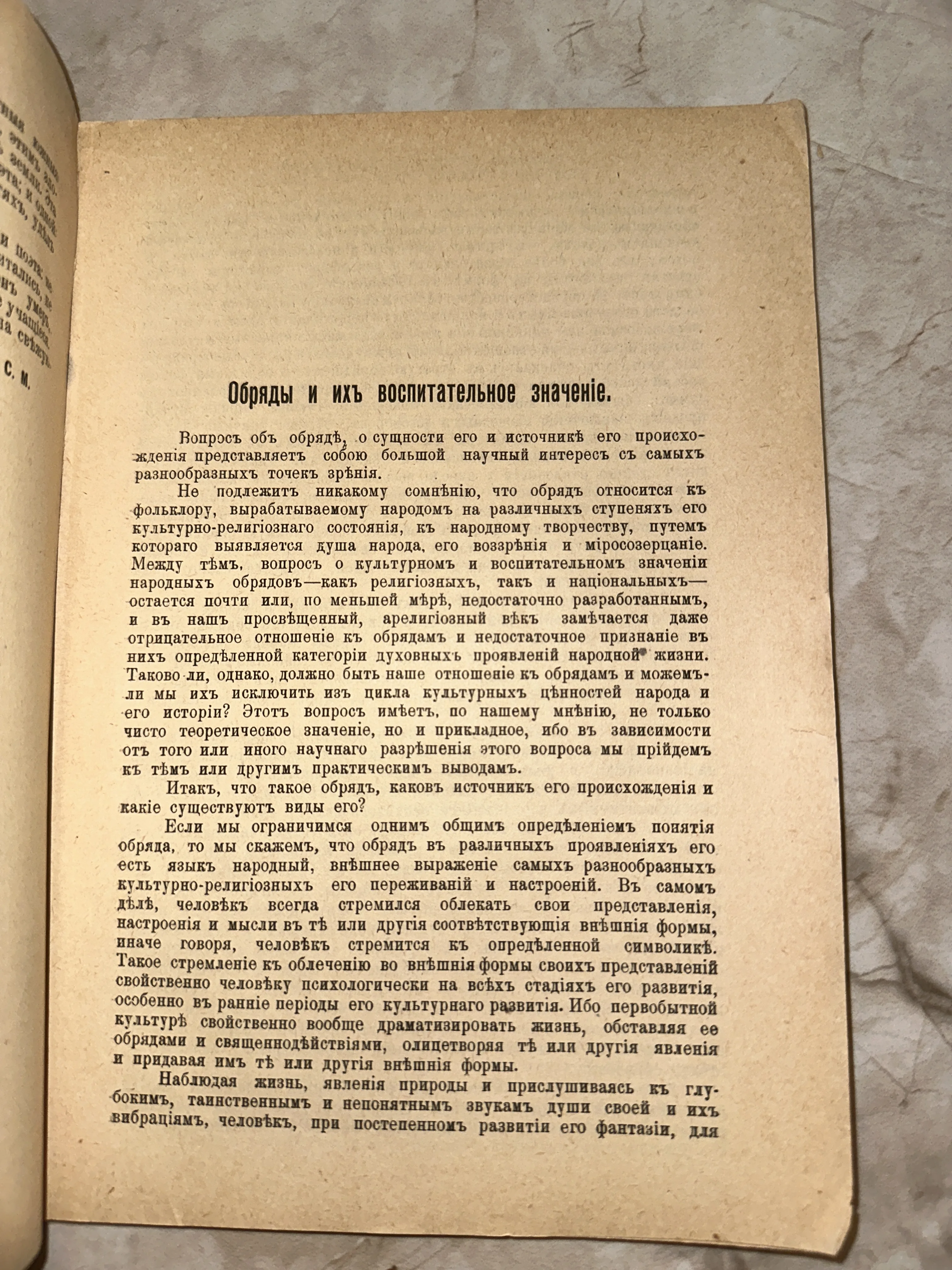 Перед вами подлинный фрагмент дореволюционной гуманитарной мысли, посвященный этнографии и народной психологии. Пожелтевшая от времени бумага с характерной дореформенной орфографией погружает в атмосферу научных дискуссий начала XX века. Текст сохранился в прекрасном состоянии, передавая дух эпохи и глубину исследования народных традиций.