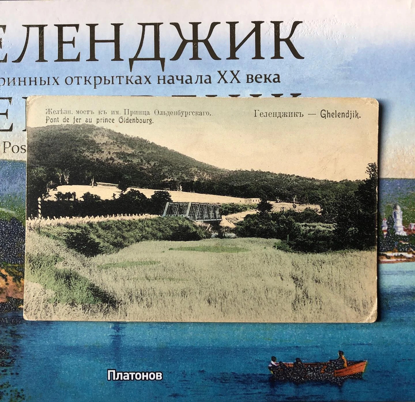 Дореволюционная почтовая открытка с видом на железный мост к имению принца Ольденбургского в Геленджике.