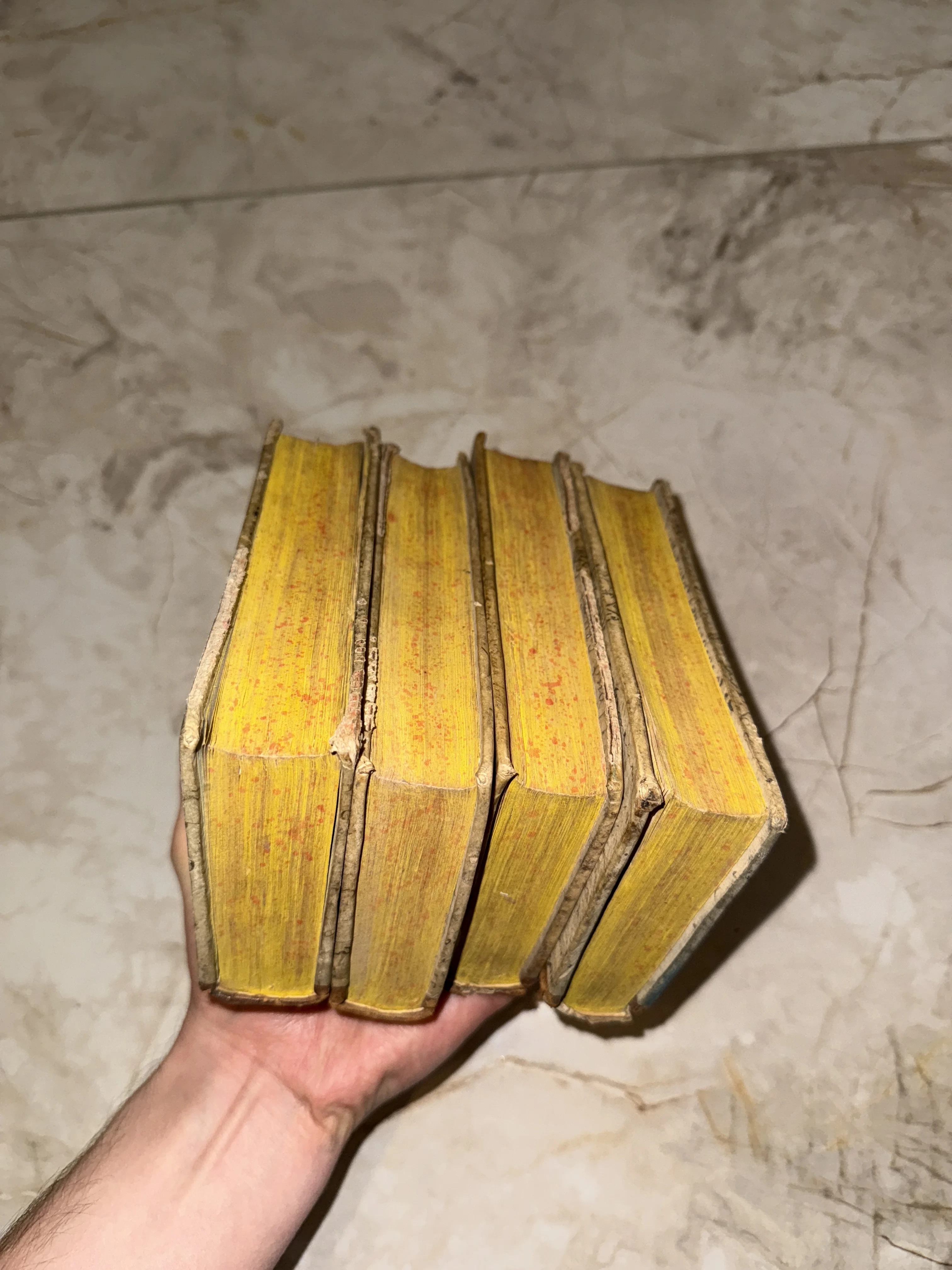 Комплект из четырех редких томов с характерным декоративным крапом на обрезах, свидетельствующим о высоком качестве переплетного дела прошлого. Время оставило благородные следы на обложках, подчеркивая аутентичность и историческую ценность каждого экземпляра. Компактный размер и прекрасная сохранность бумаги делают это собрание жемчужиной для любого библиофила.