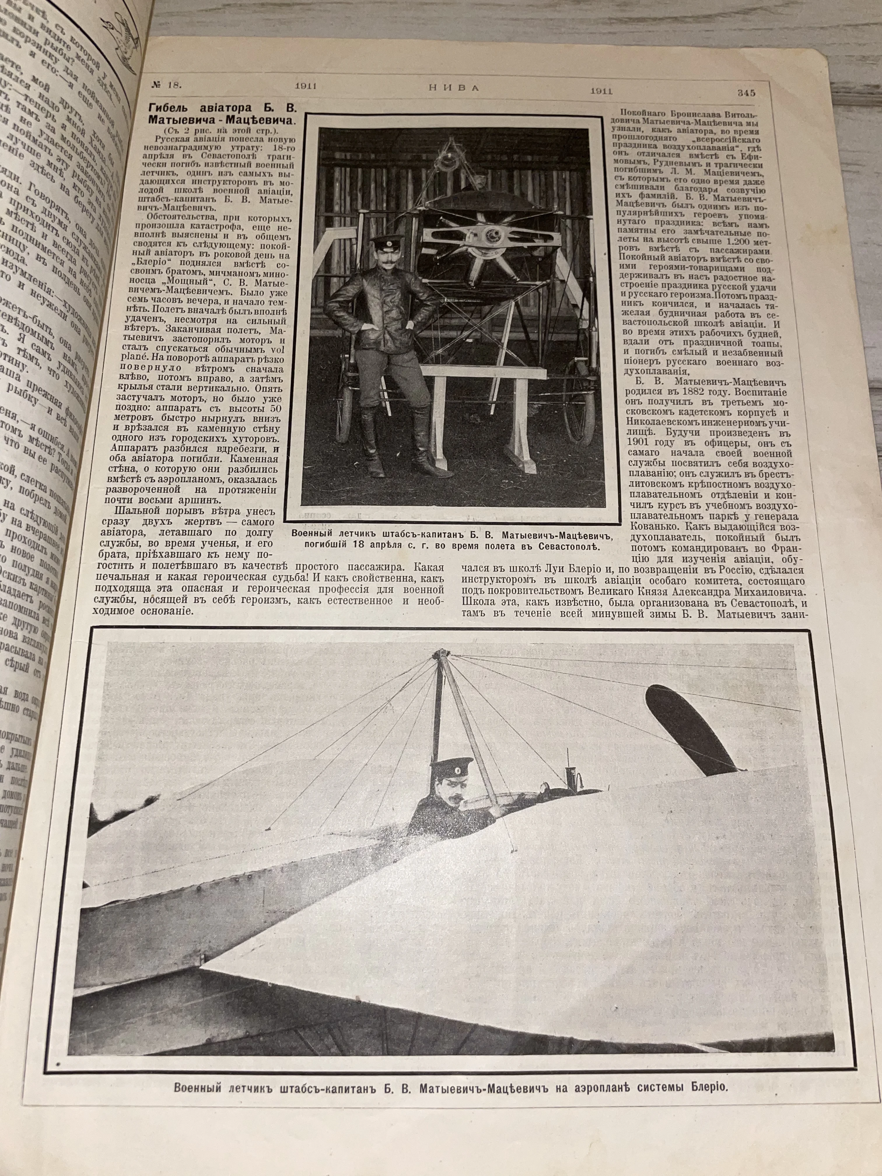 Страница журнала «Нива» 1911 года: память об авиаторе Матыевиче-Мацеевиче