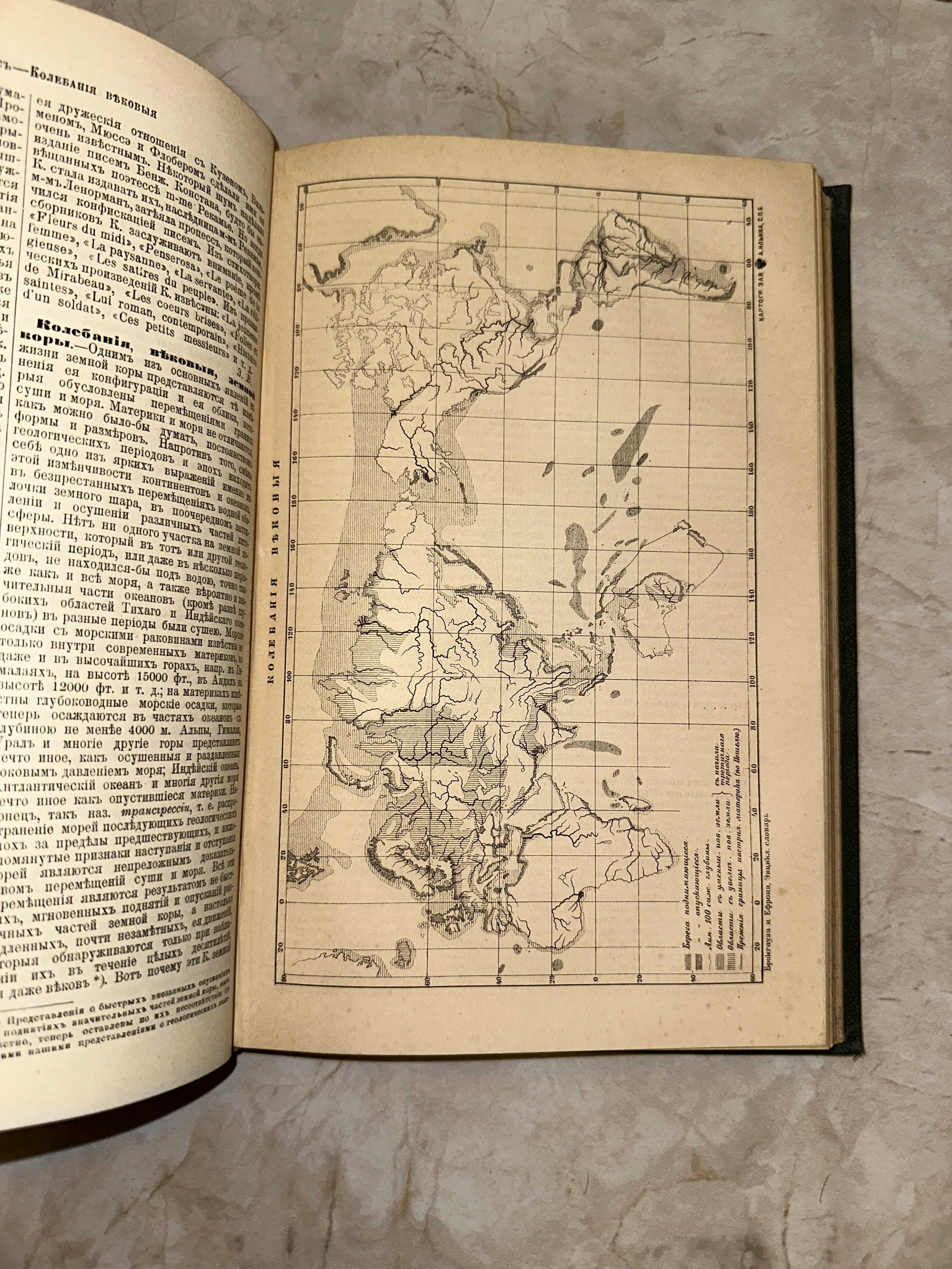 Старинная карта земной коры: Энциклопедия Брокгауза и Ефрона