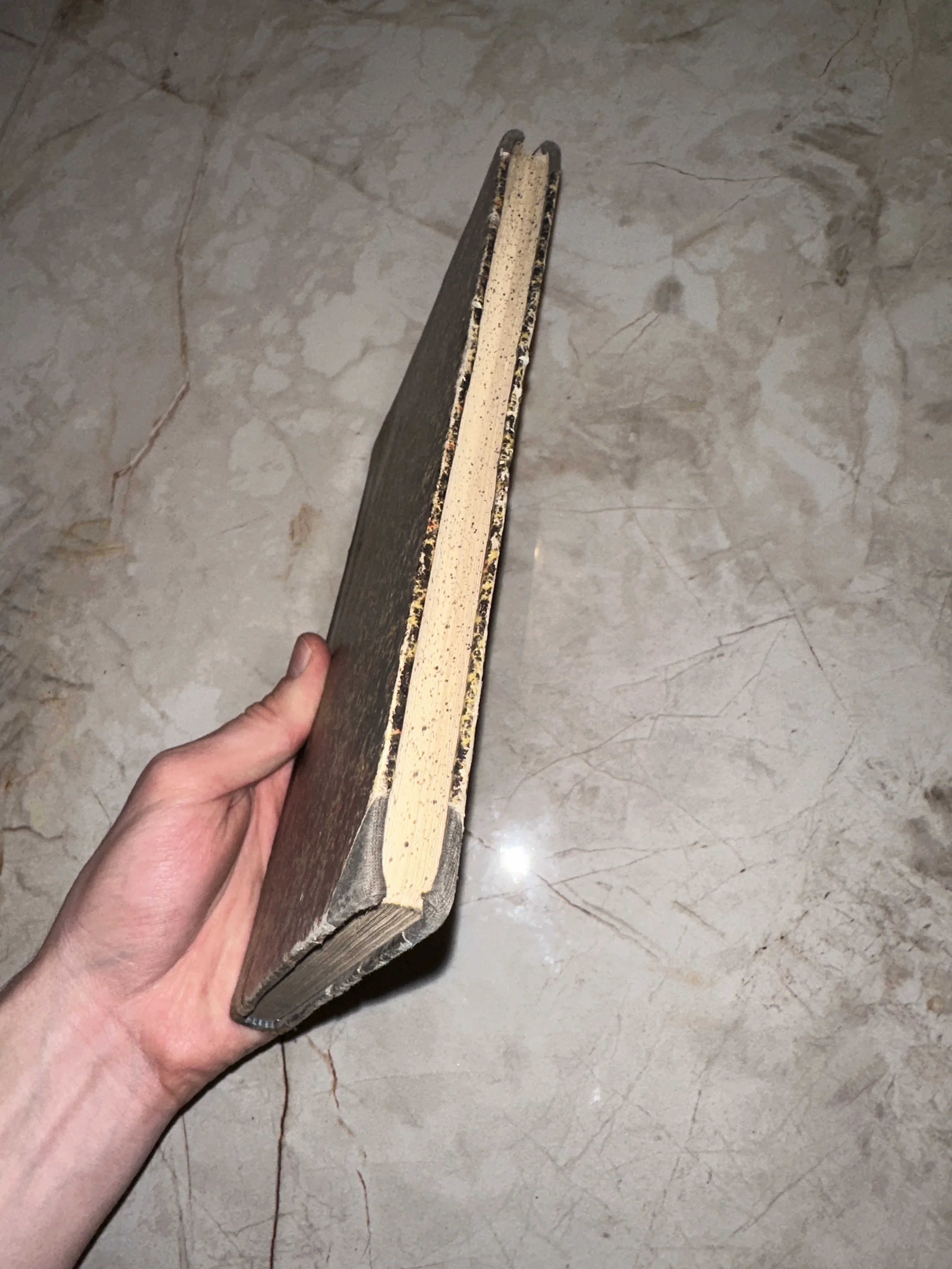 Этот редкий экземпляр сохранил подлинное очарование старины: пожелтевший от времени обрез и характерные потертости на углах подчеркивают его богатую историю. Благородная патина и плотные страницы делают книгу не просто предметом коллекционирования, а настоящим артефактом ушедшей эпохи.