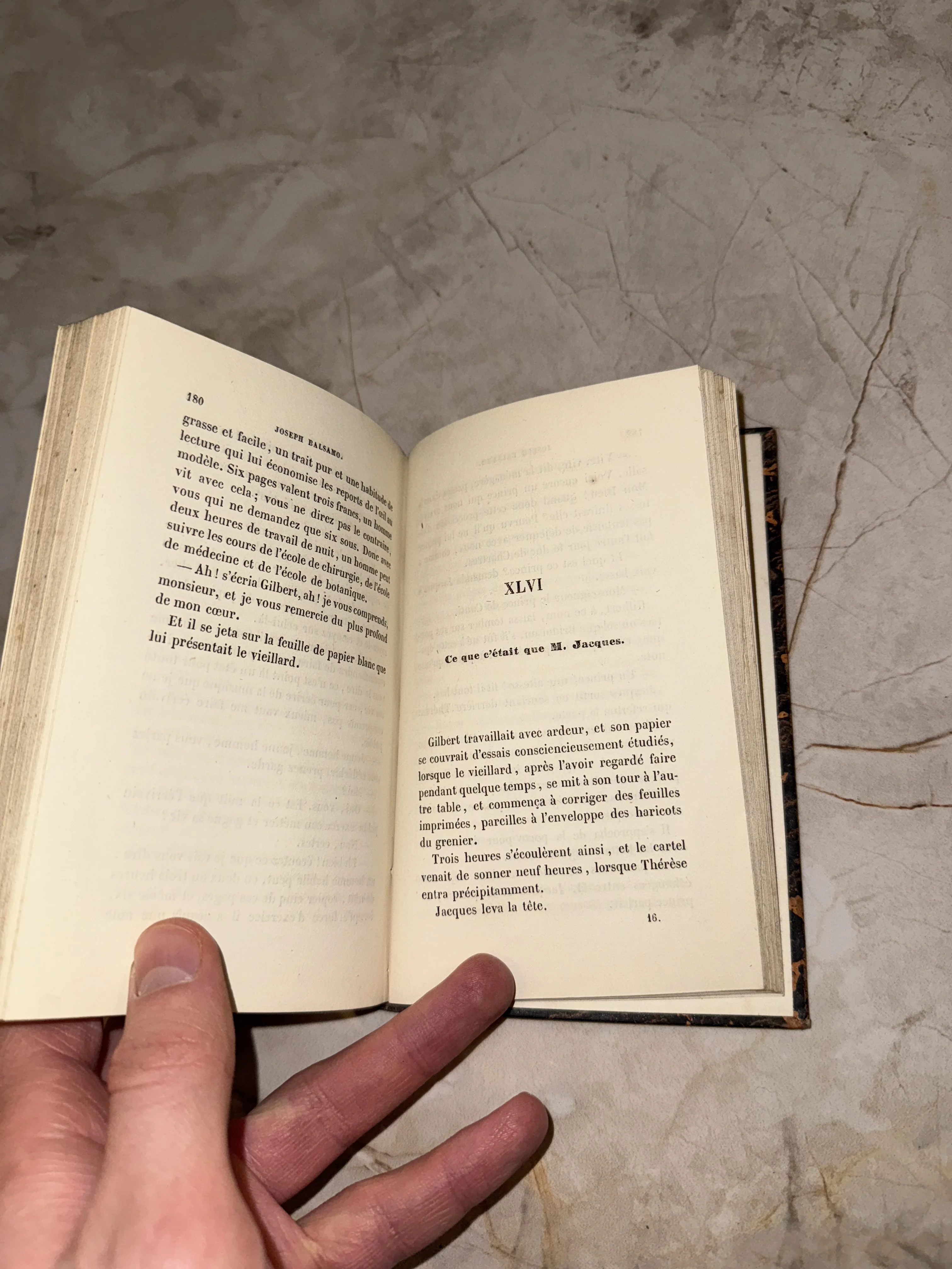 Разворот старинной книги на французском языке с заголовком Joseph Balsamo и номером главы XLVI.