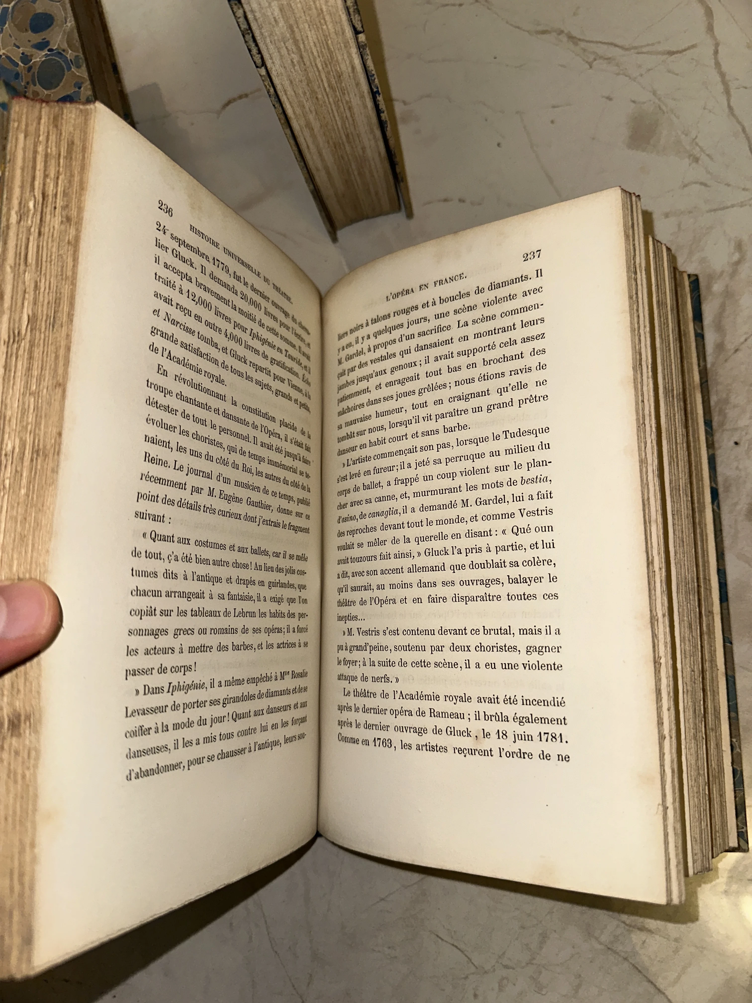 Уникальный разворот антикварного издания, посвященного истории французского театра и оперы. Пожелтевшие от времени страницы сохранили четкую типографику и дух эпохи Просвещения, делая книгу ценным экспонатом для коллекционеров и искусствоведов.