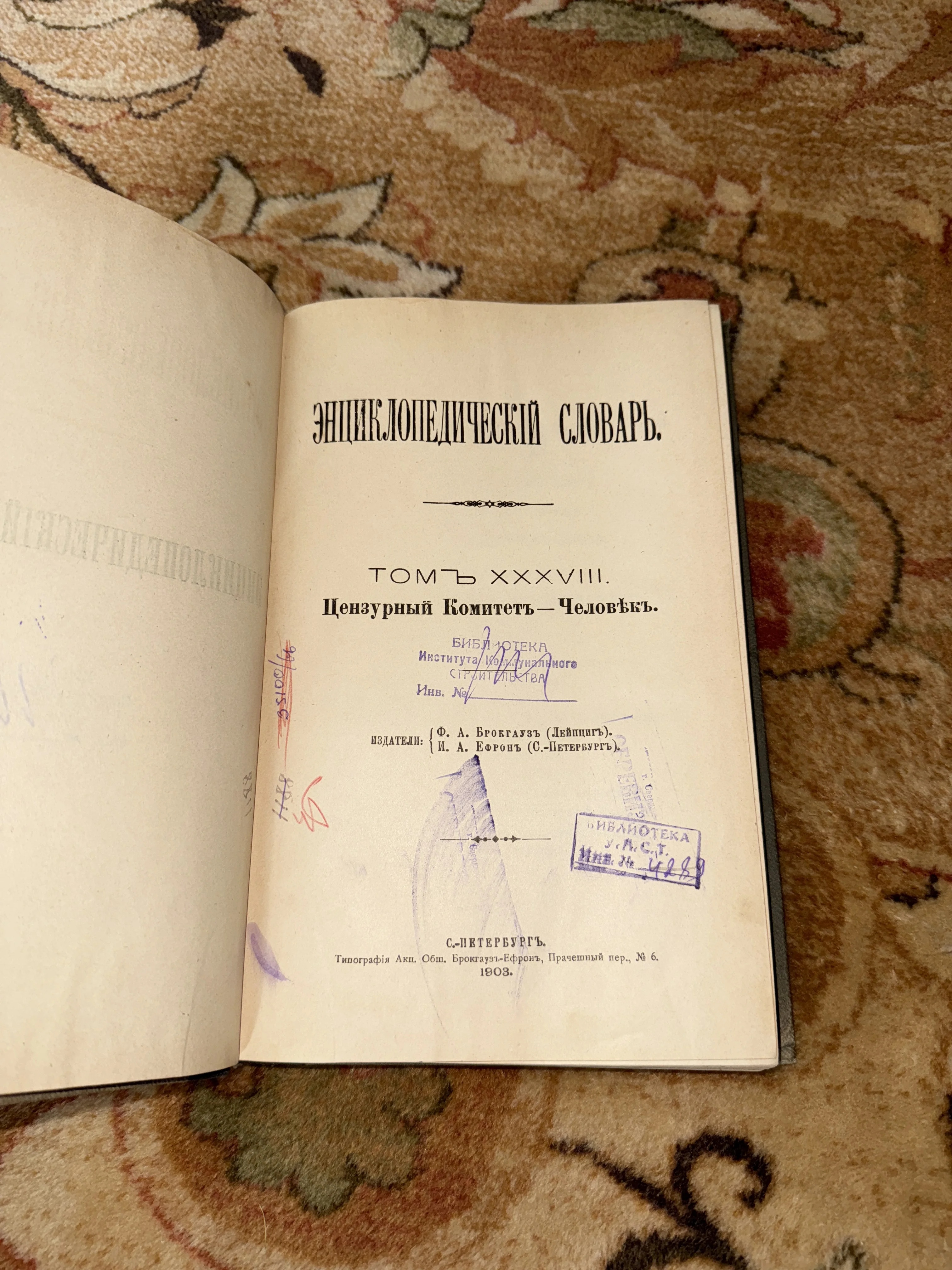 Энциклопедический словарь Брокгауза и Ефрона, том XXXVIII, 1903 год